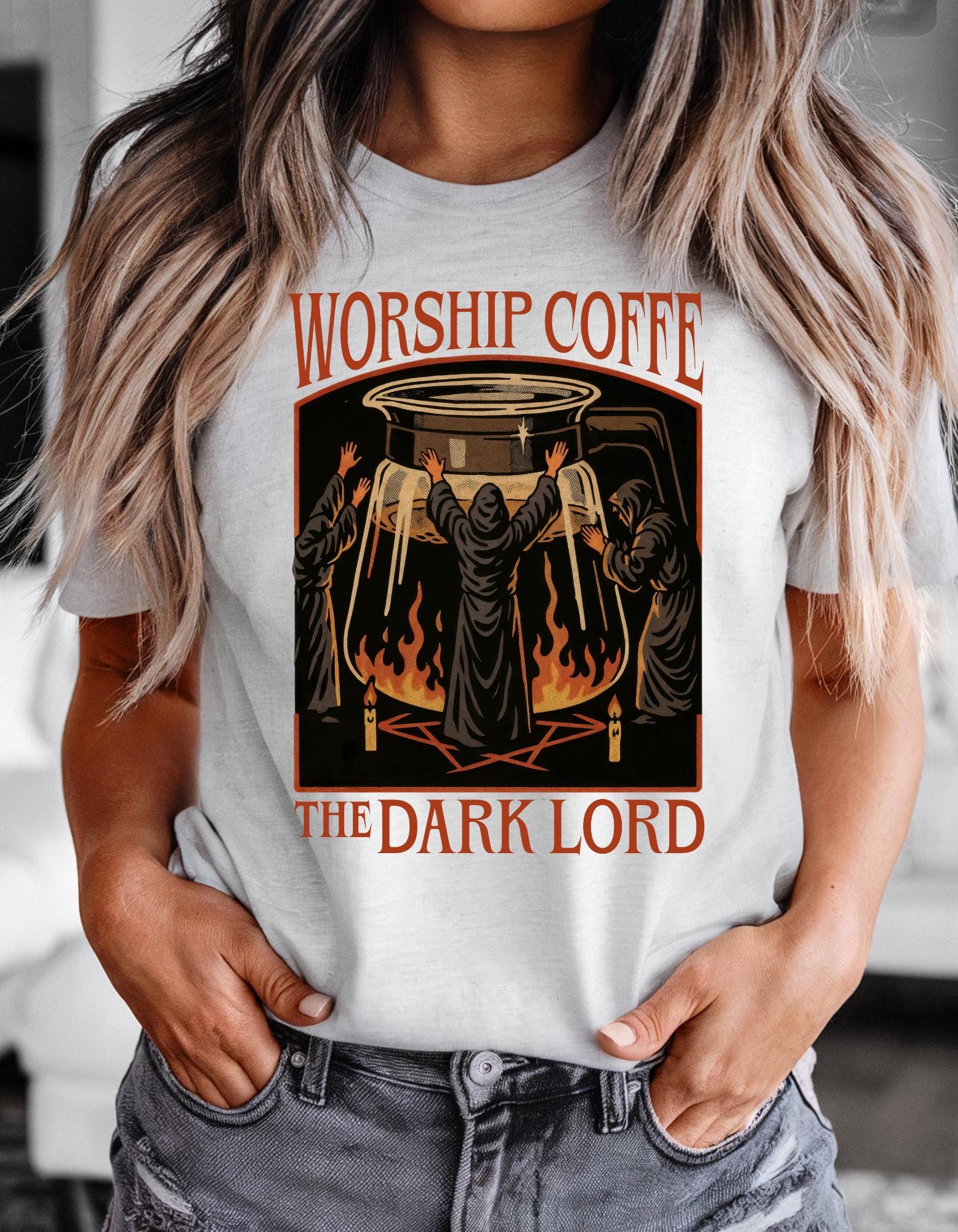 Made for those who run on caffeine, sarcasm, and dark humor. Whether your a Gothic queen, a witchy soul, or just love alternative humor, this Tee is your new go-to.
