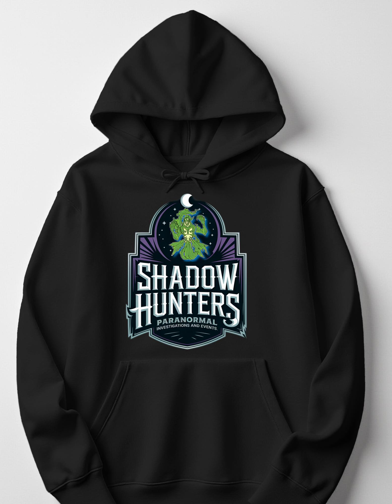 Shadow Hunters is now offering hoodies! This is a one of kind design that you can now own on a comfy hoodie. whether you are doing a cold night investigation, chillin by a bomb fire, or your just a fan of this Paranormal team, this is perfect for chilly season.
