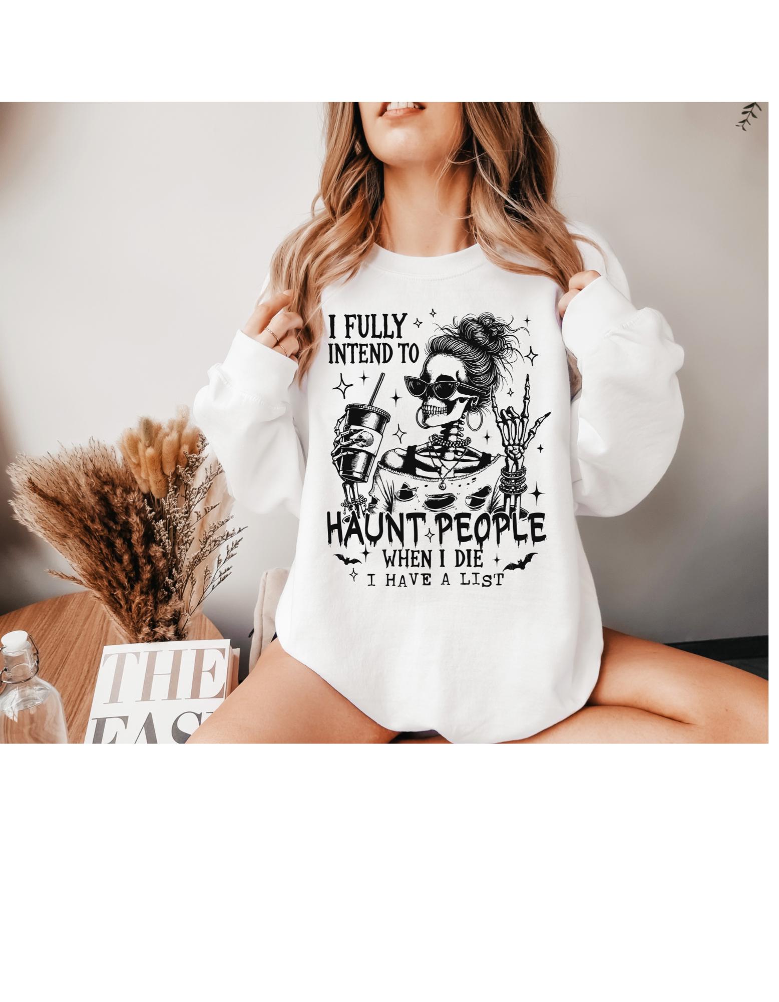 This sweatshirt is a conversation piece, whether your lounging at home, out with your friends, or have a day full of errands. This bold sarcastic message combined with a soft and comfy fit, is perfect for the start of spooky season.