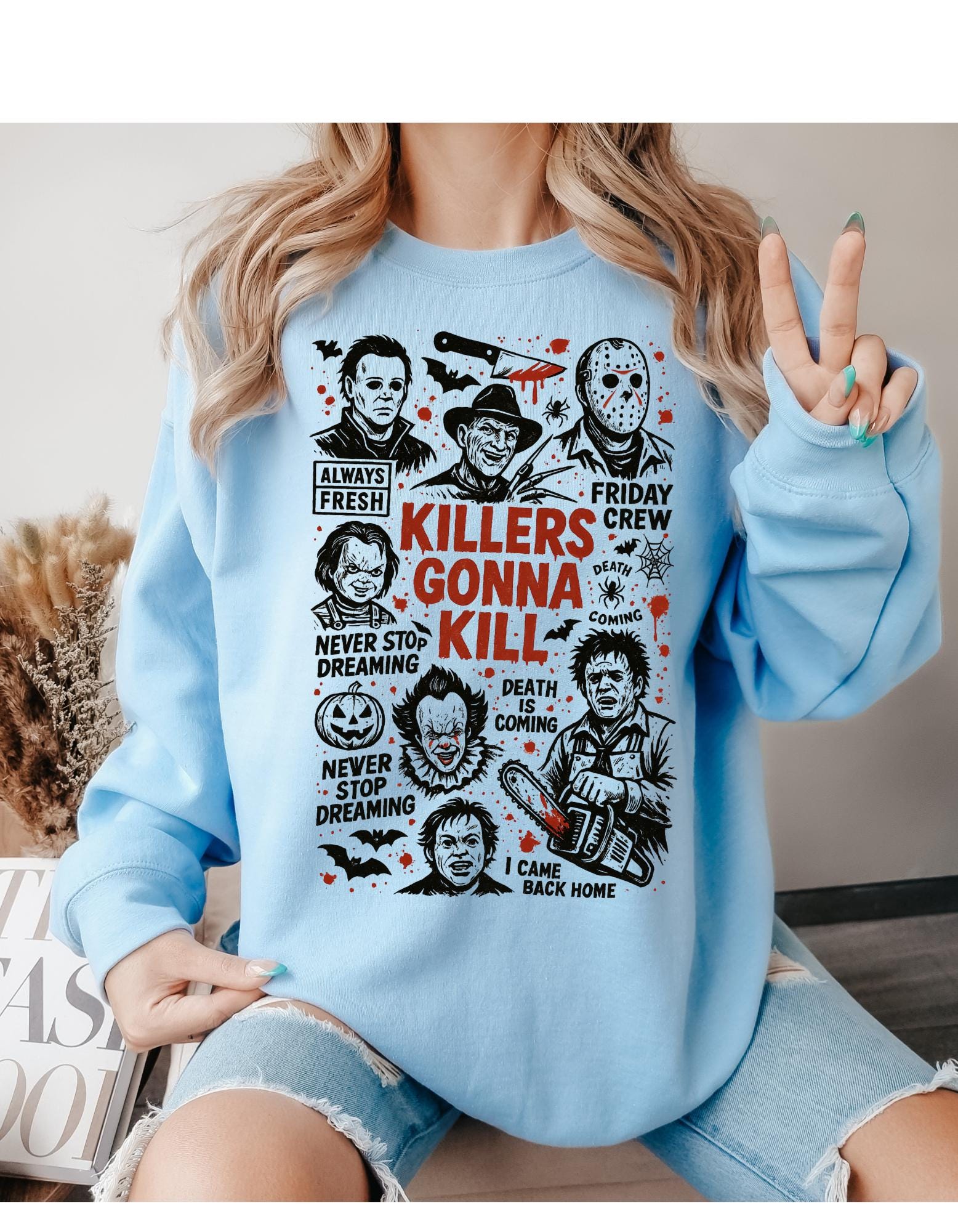 All your horror favorites in one shirt! step out in this Classic 80s horror movie All stars just in time for spooky season.