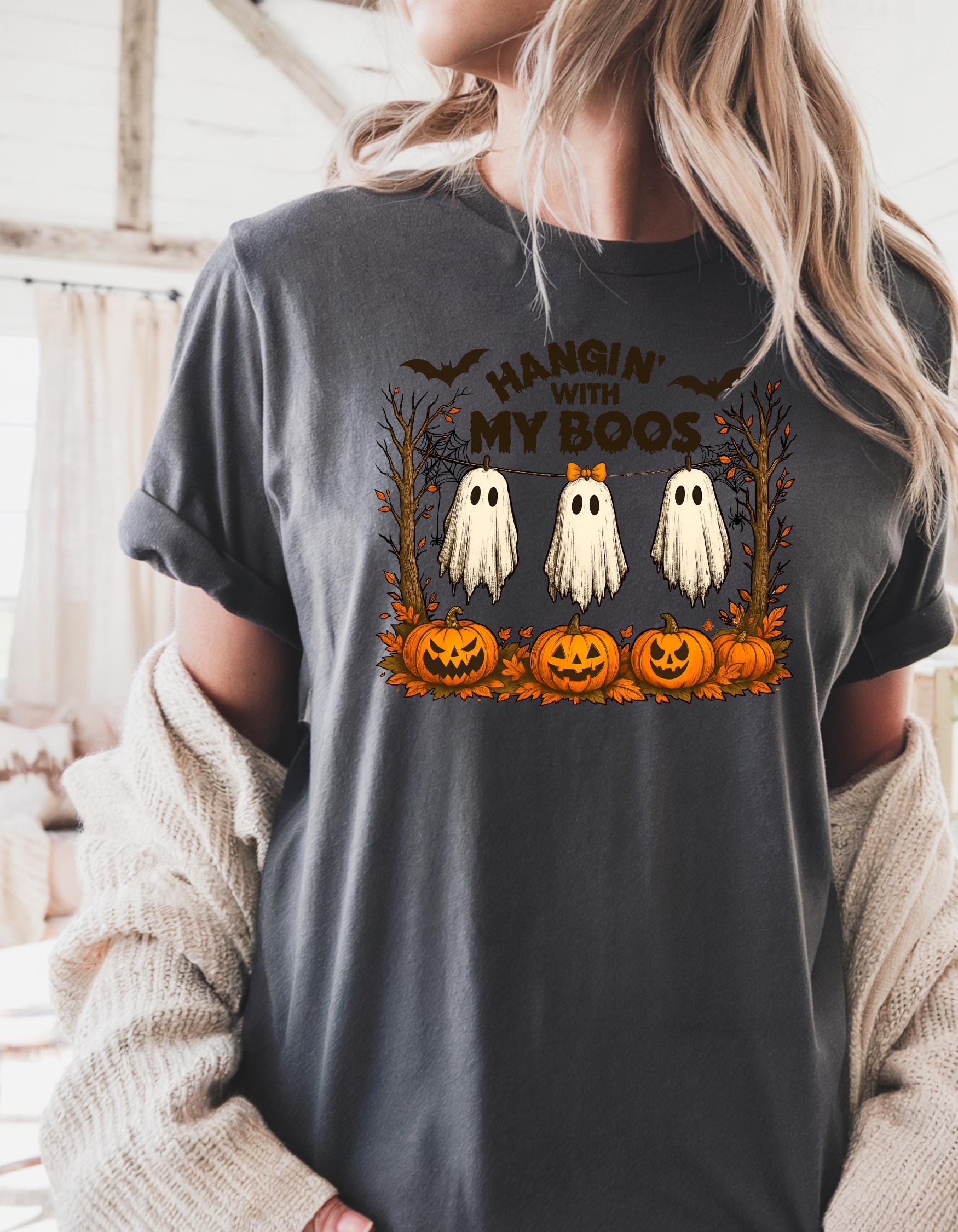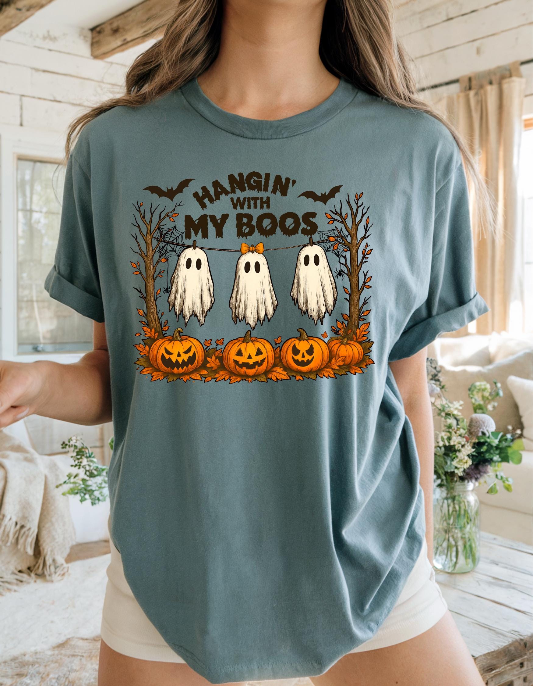 Halloween babes this cutie ghost shirt is a must have vibe! it has a vintage feel that is sure to get you in the spooky spirit!