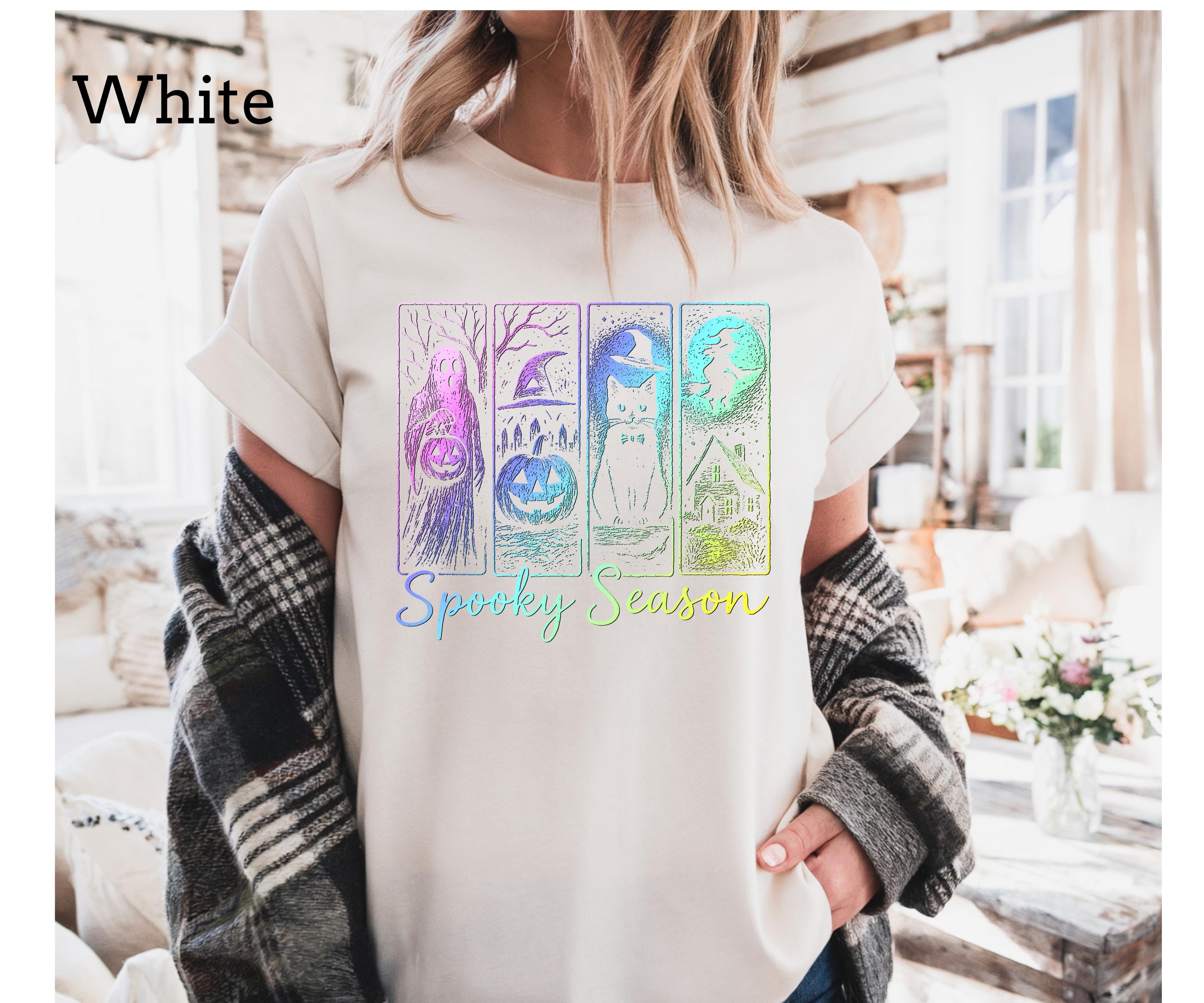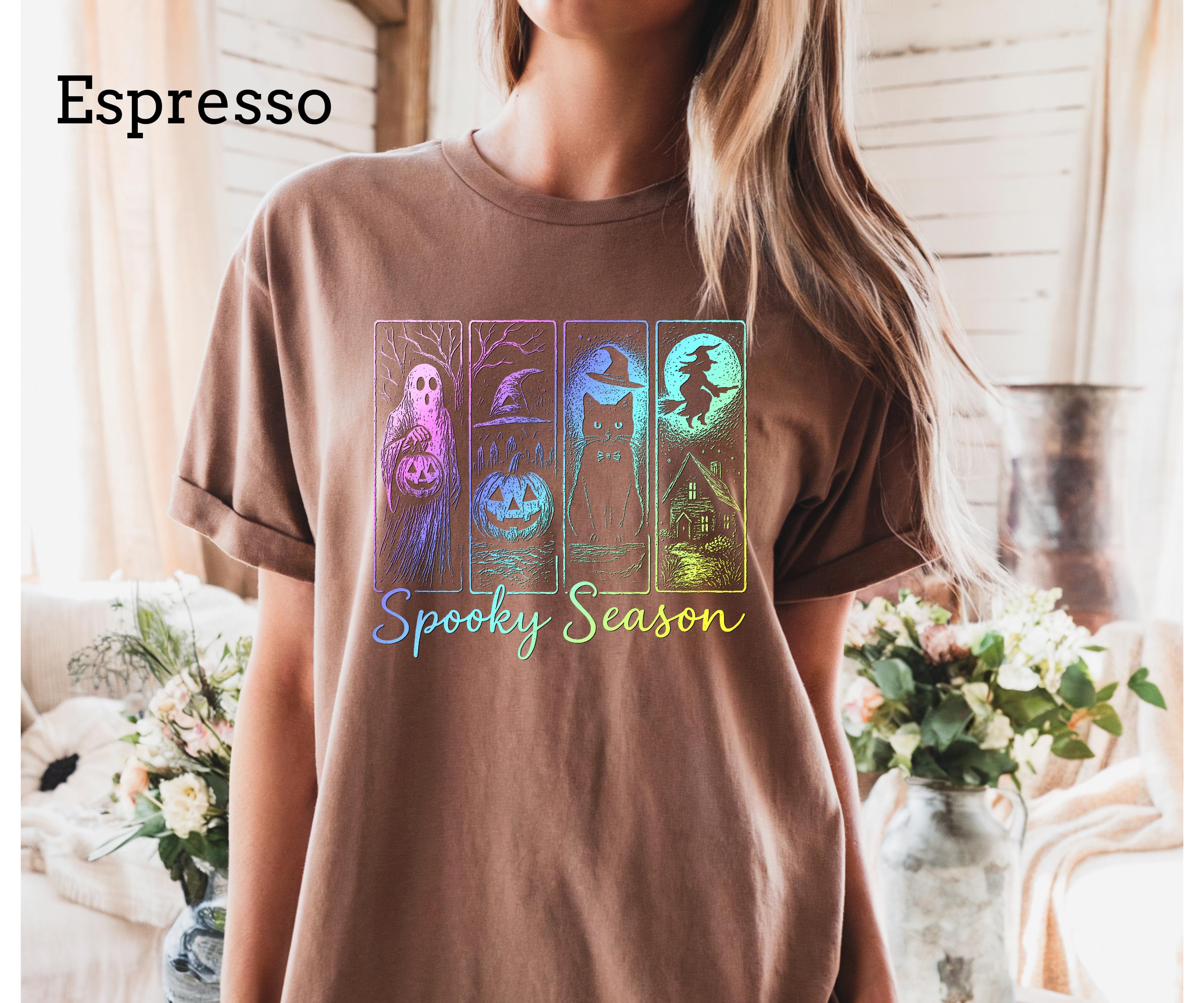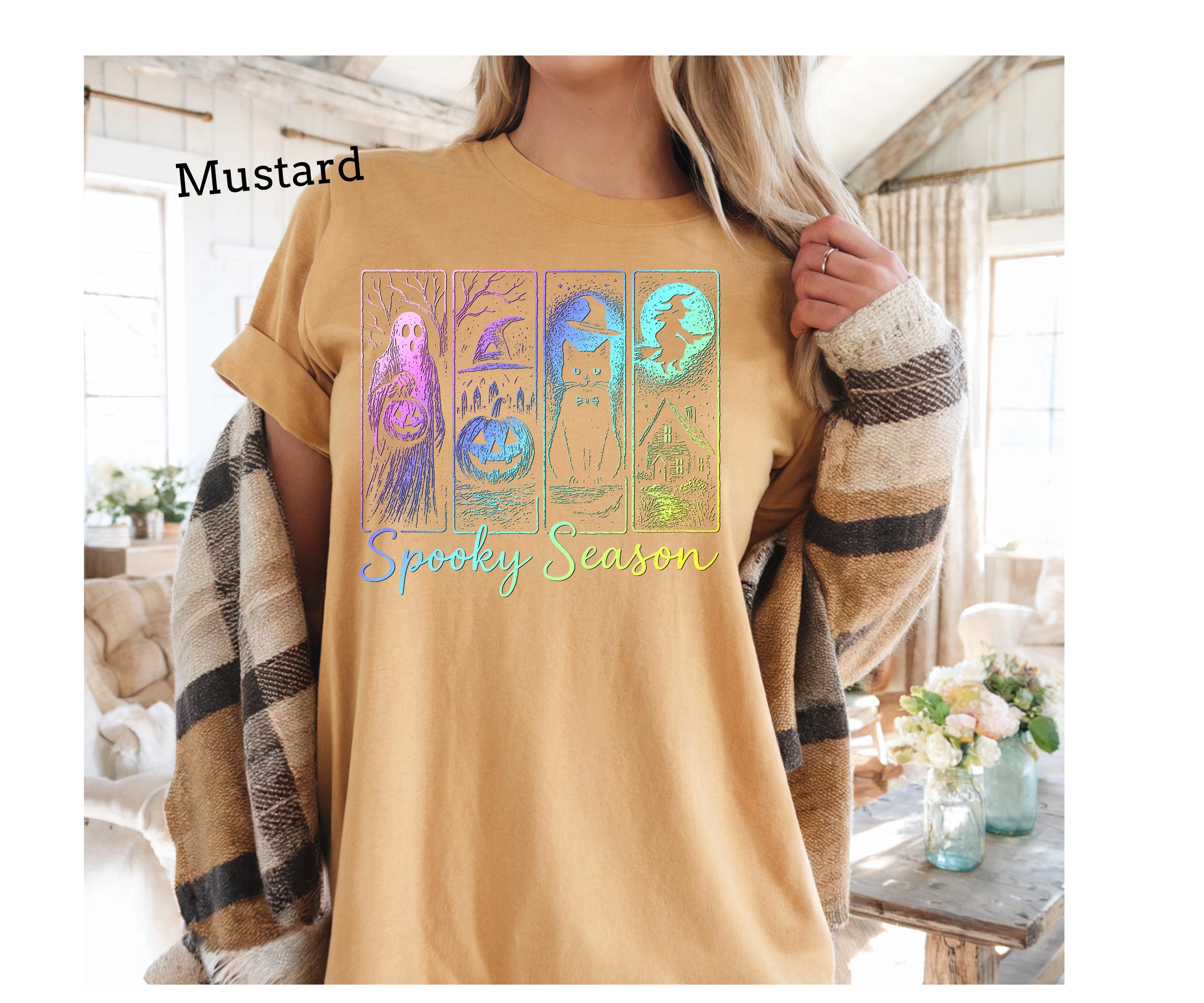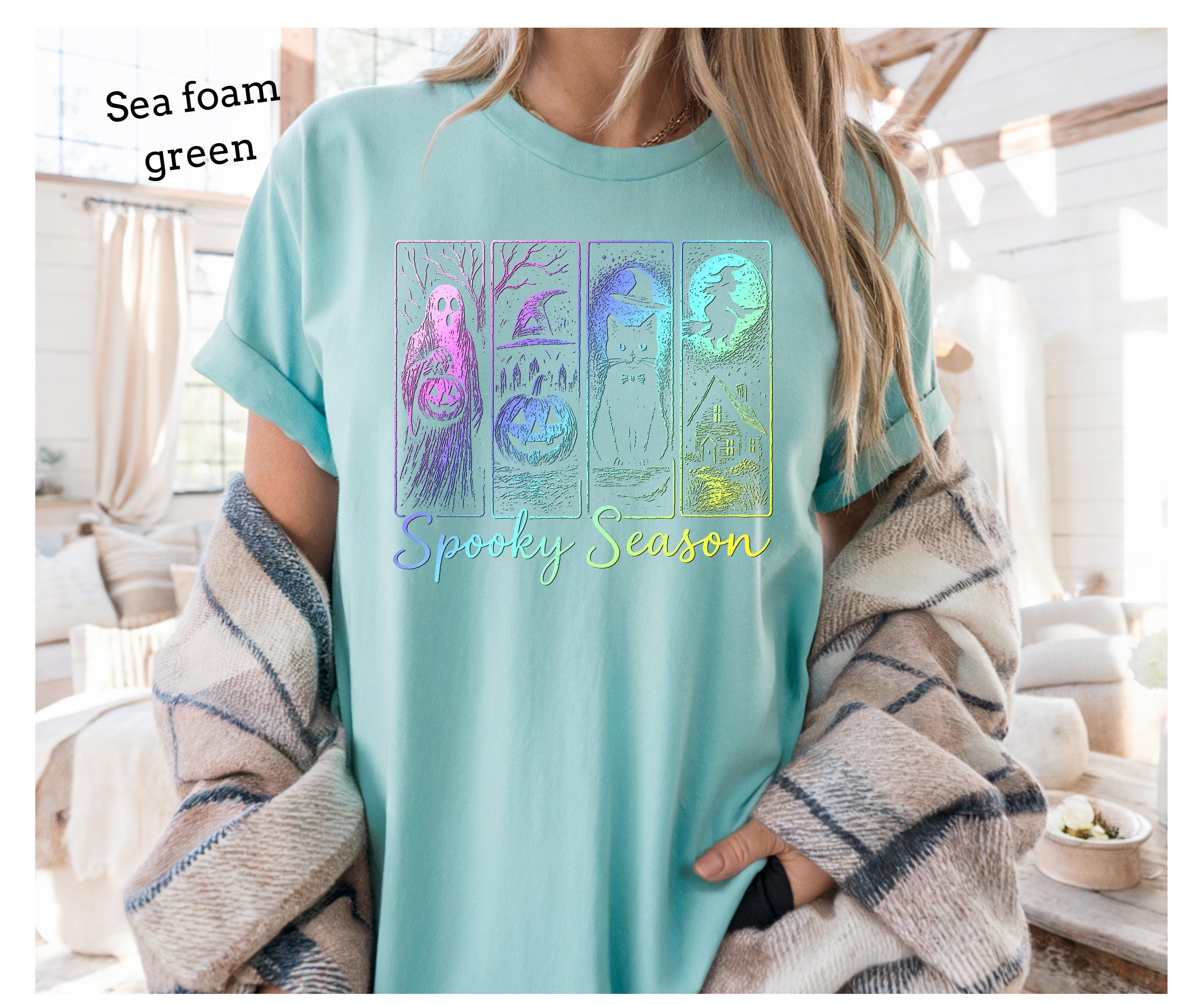 Spooky season show stopper! Designed with eye-catching metallic colors that shimmer and sift with the light. This shirt brings an elevated twist to your Halloween style.