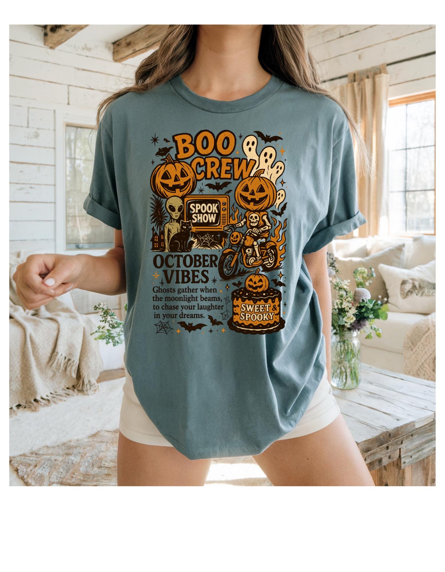 Get into the Spooky spirit with this Boo Crew vintage-inspired Halloween Tee! Featuring a fun retro pumpkin design, this shirt is the perfect mix of cute and spooky.