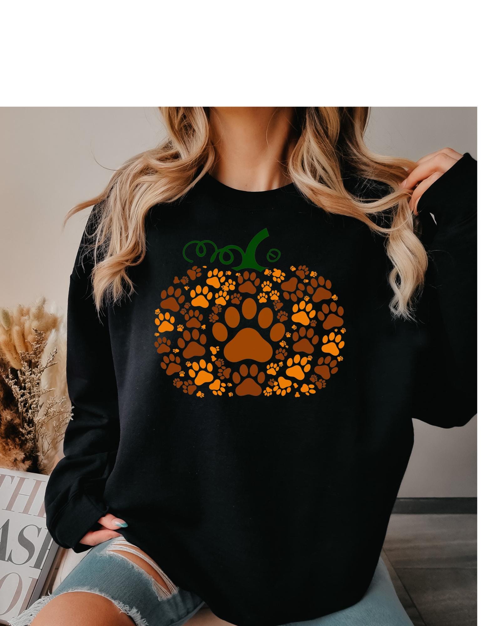 Celebrate fall and your love for furry friends with this unique pumpkin design made entirely out of paw prints. Perfect for pet lovers, this festive piece combines the cozy fall vibes with the joy pets bring to our lives.