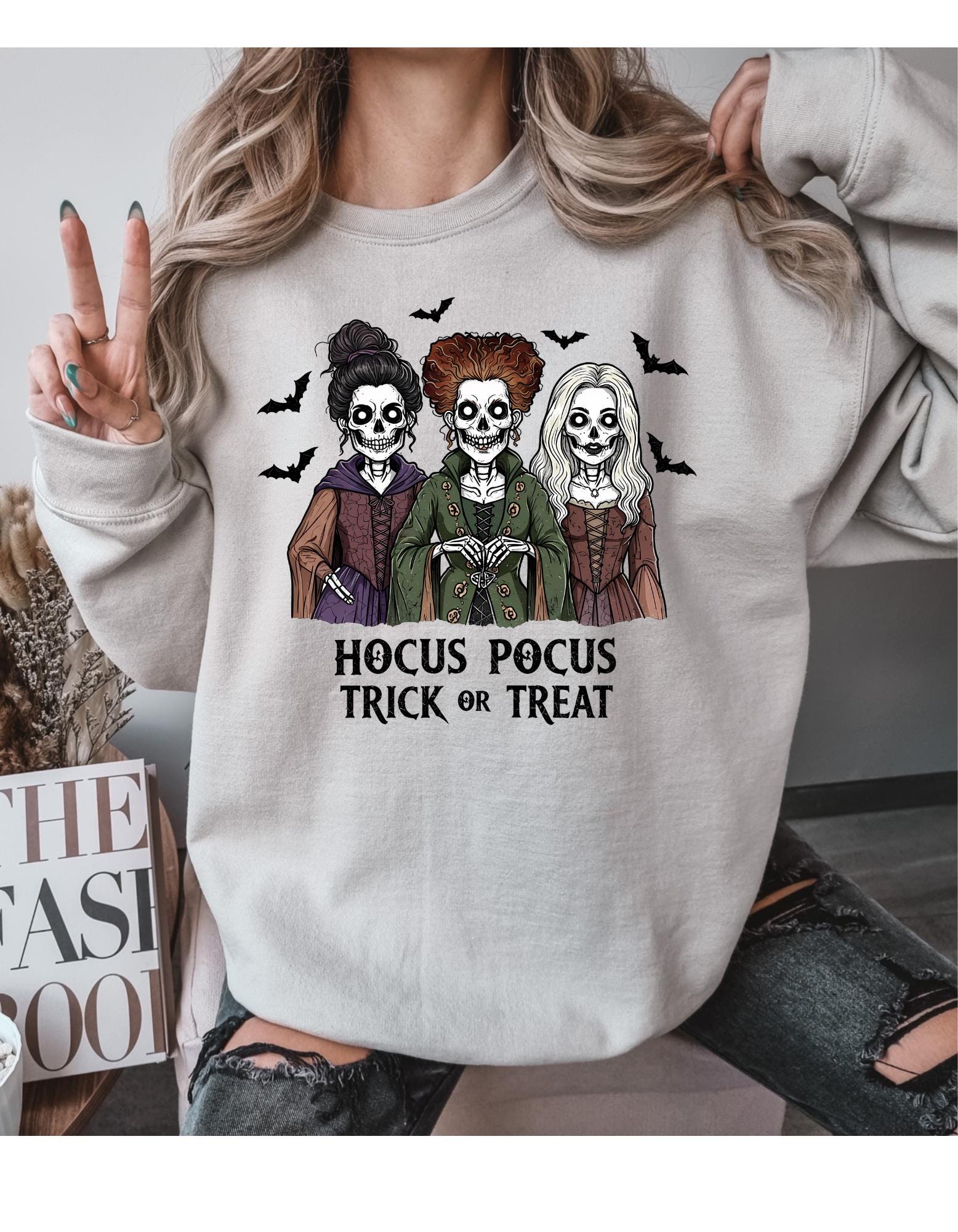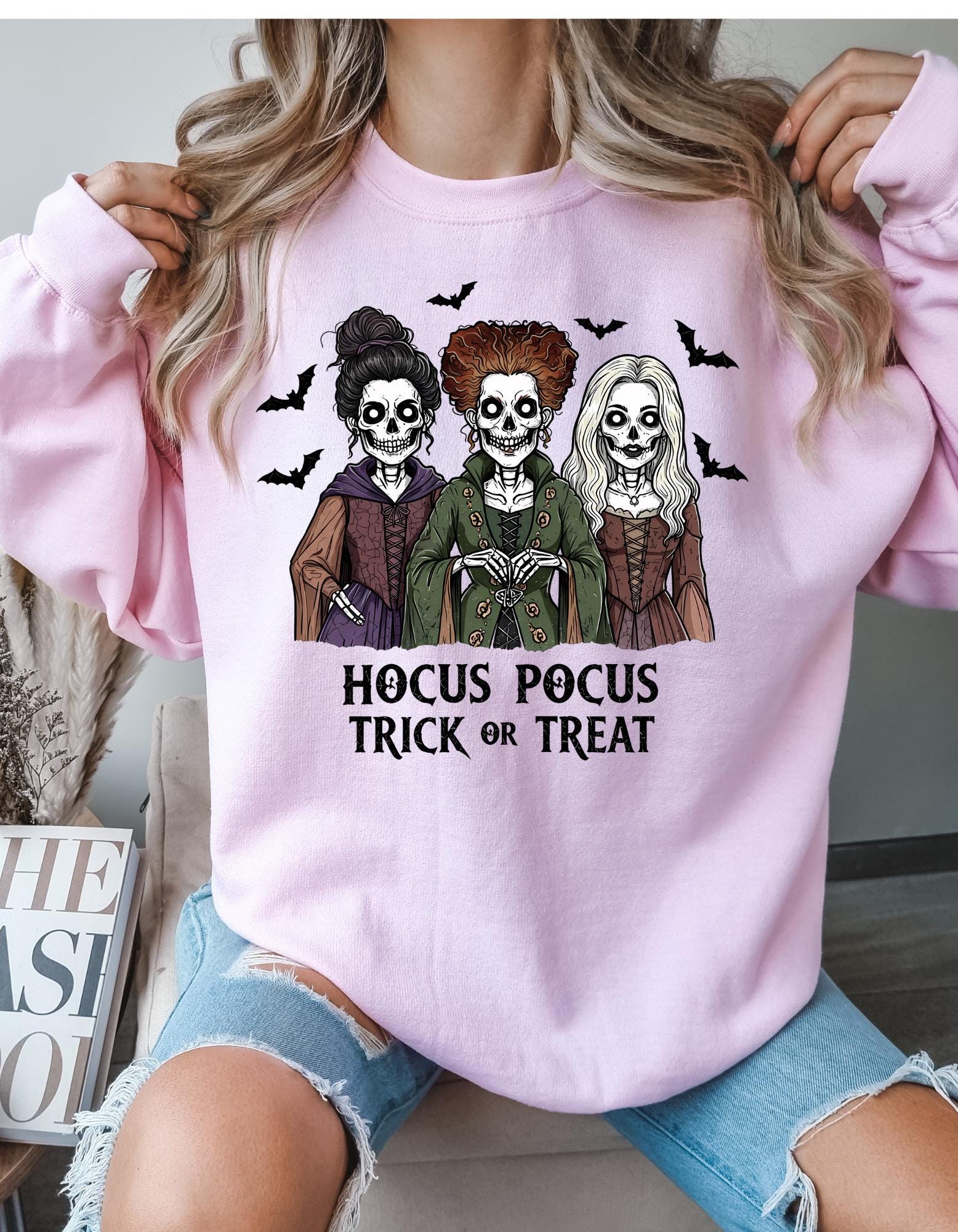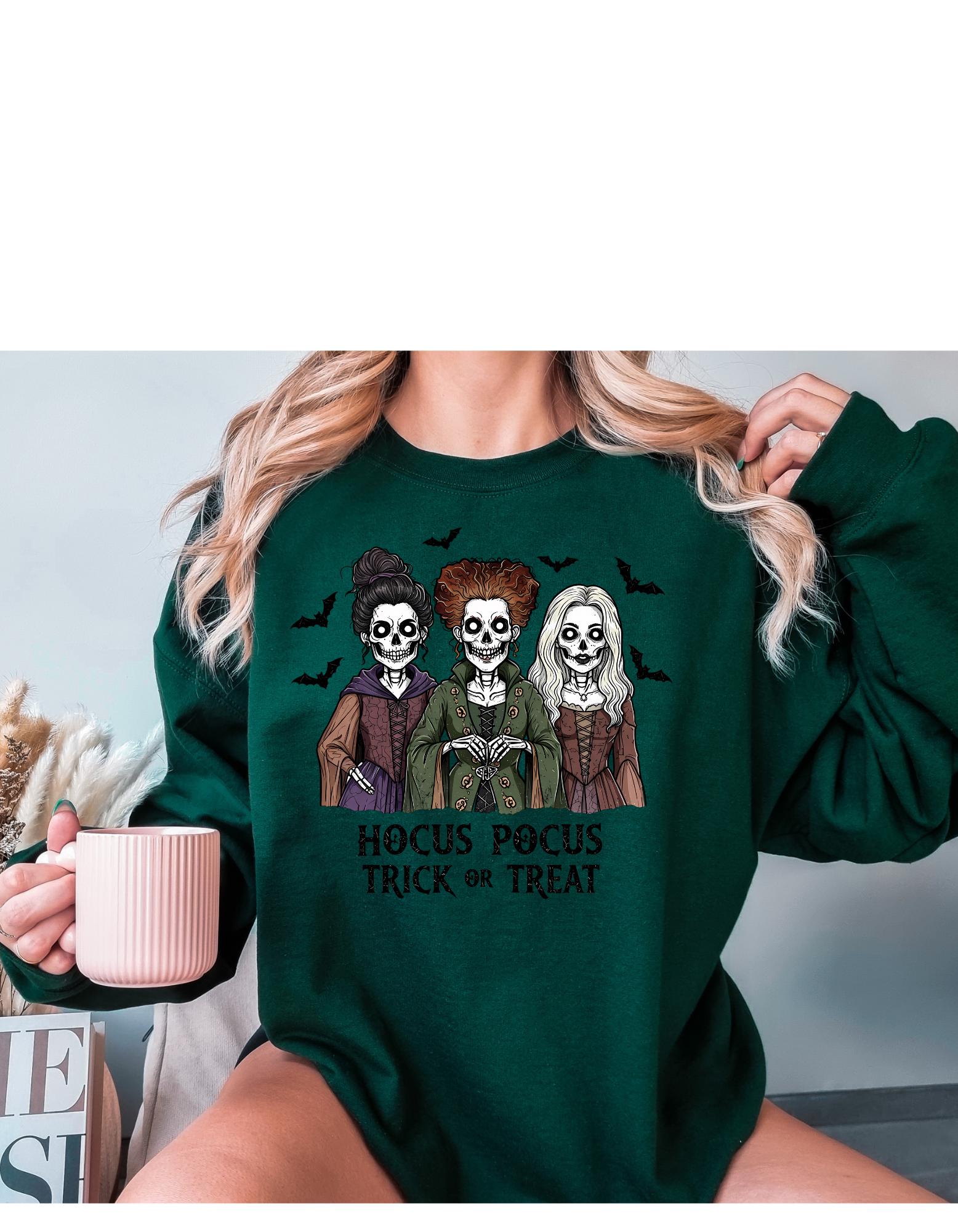 Bring a little magic to your wardrobe with this cozy Hocus Pocus Halloween sweatshirt. This spooky cute sweatshirt is perfect for Fall nights,pumpkin-patches,Halloween parties,or just to be cute running errands. Make this your go to spooky season sweatshirt.