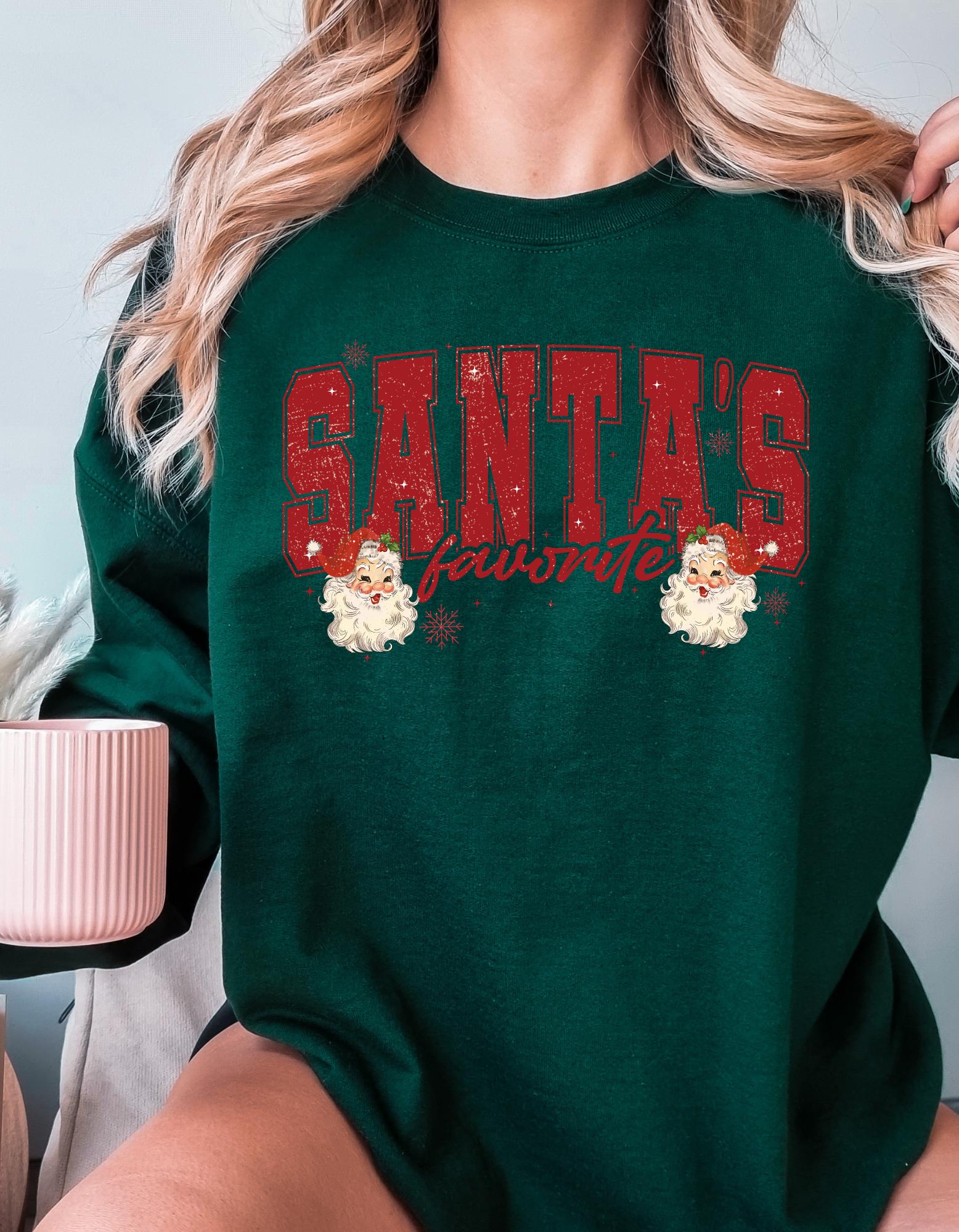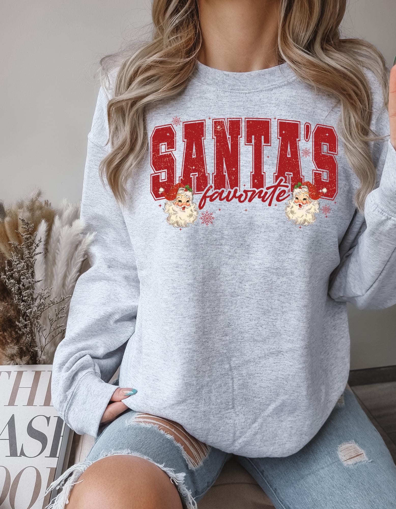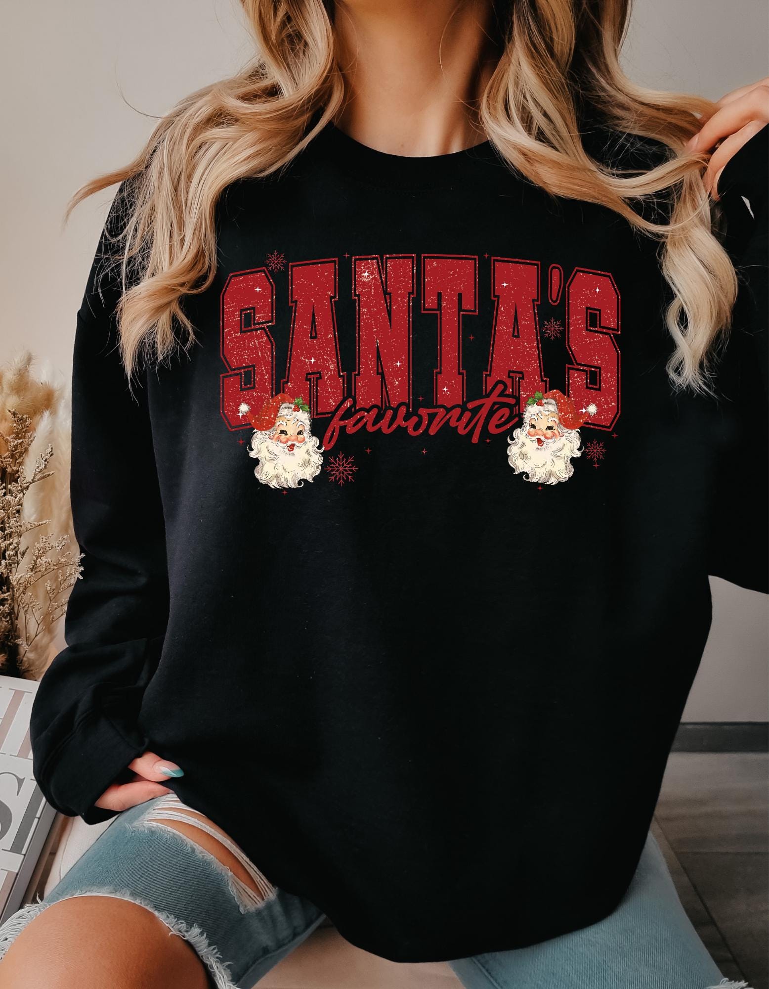 Santa's favorite Gildan crewneck heavyweight sweatshirt-cute holiday christmas tee for women