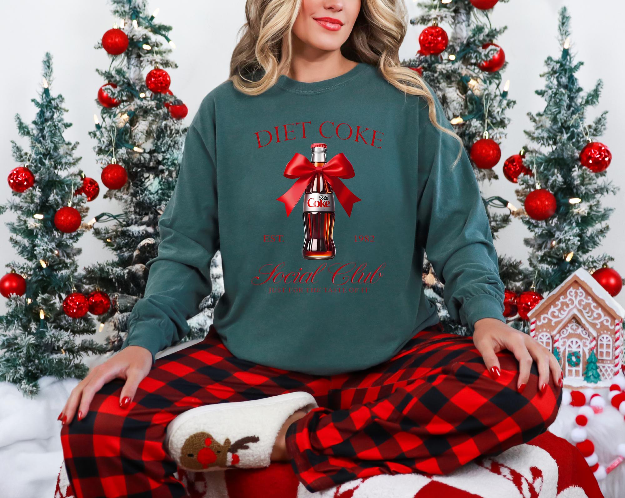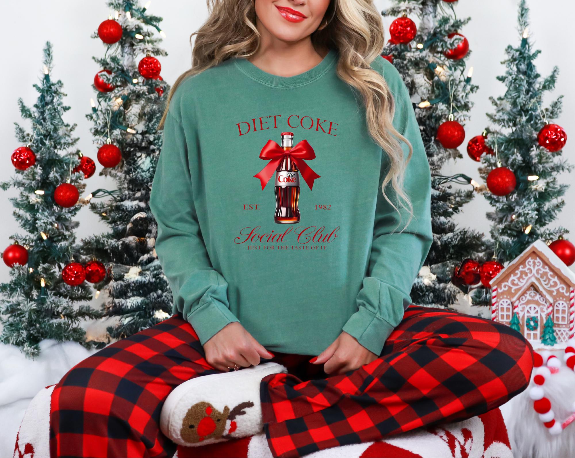 Celebrate this season in style with your favorite beverage Diet Coke Holiday long sleeve T-shirt. This shirt combines comfort and festive cheer with a playful twist. The shirt is a Comfort Colors shirt , heavy and comfortable, soft and very durable.
