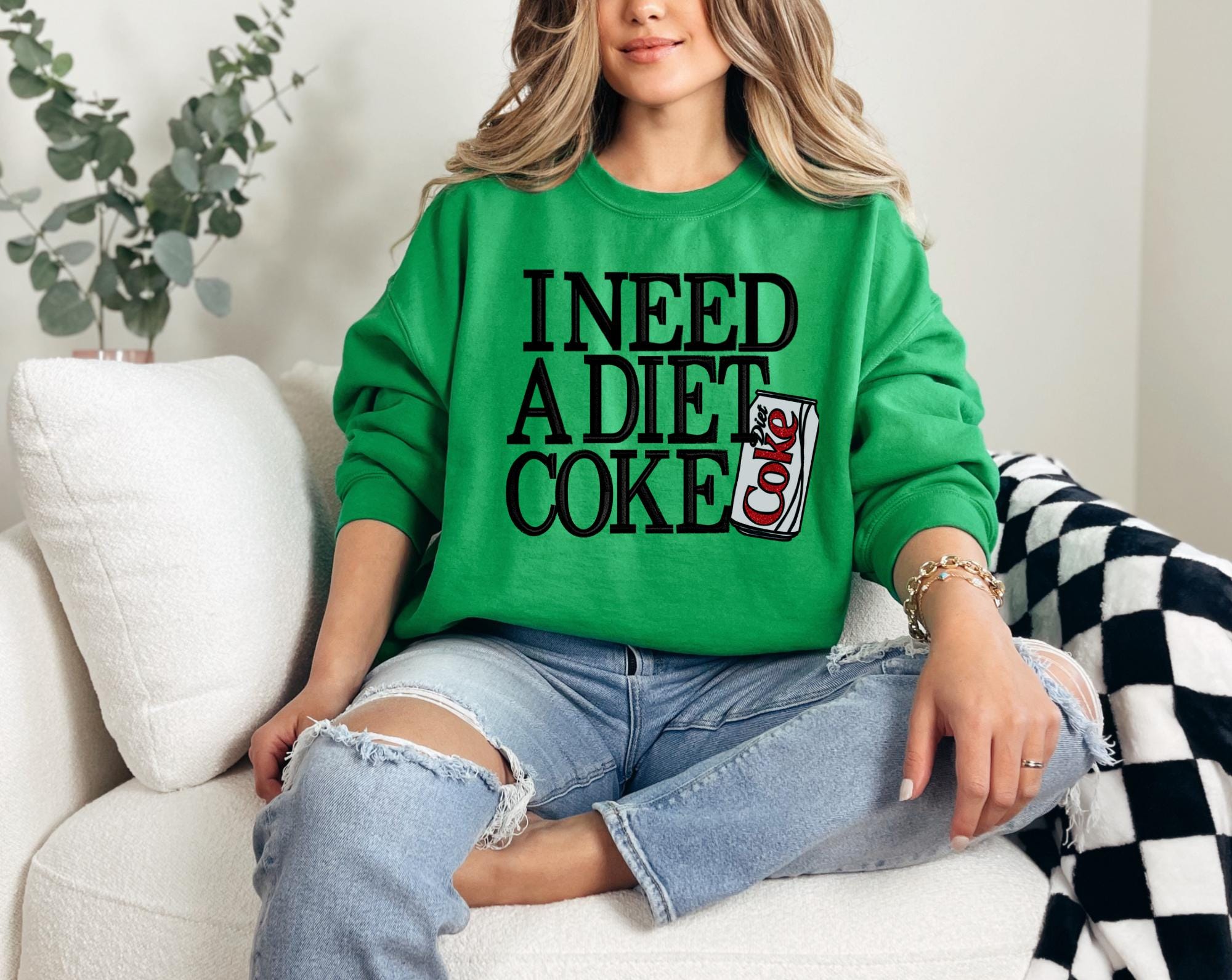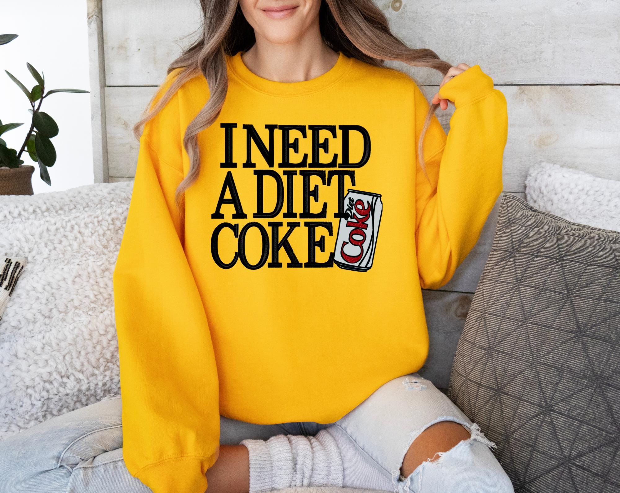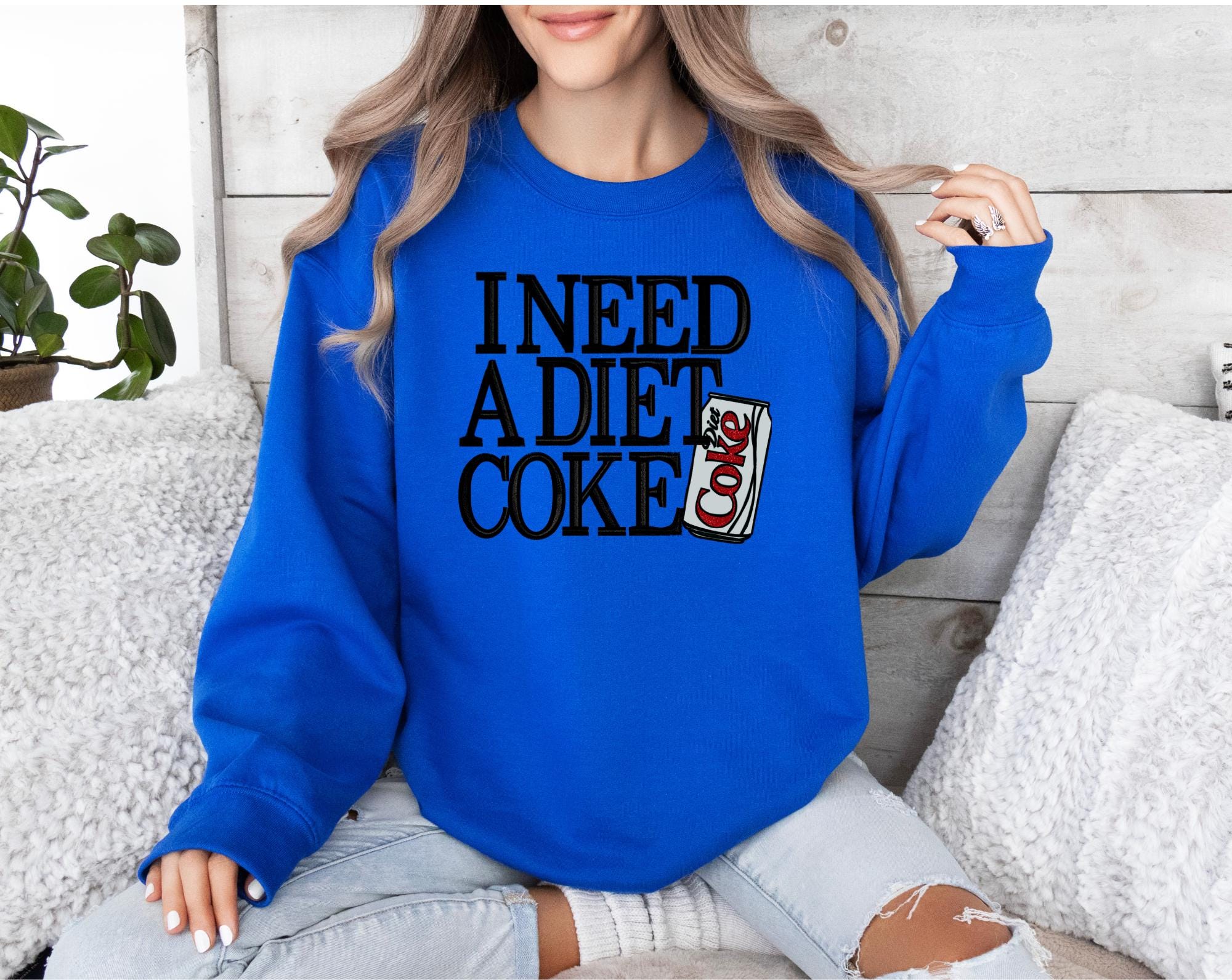 For the Diet Coke lovers who can’t start their day without a sip of bubbly perfection! This cozy sweatshirt features the playful phrase “I need a Diet Coke” paired with an adorable Diet Coke can design — perfect for showing off your caffeine devotion in style.