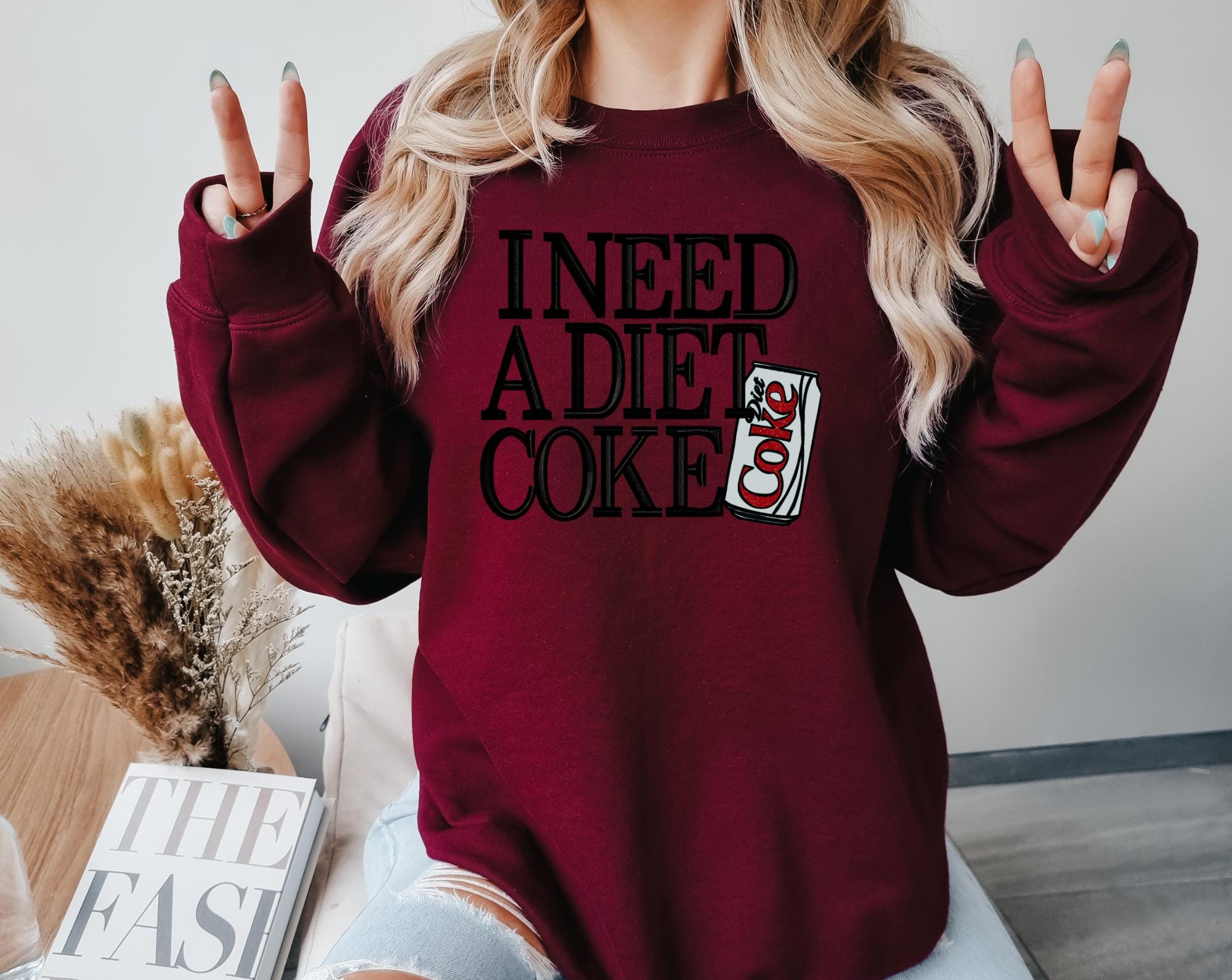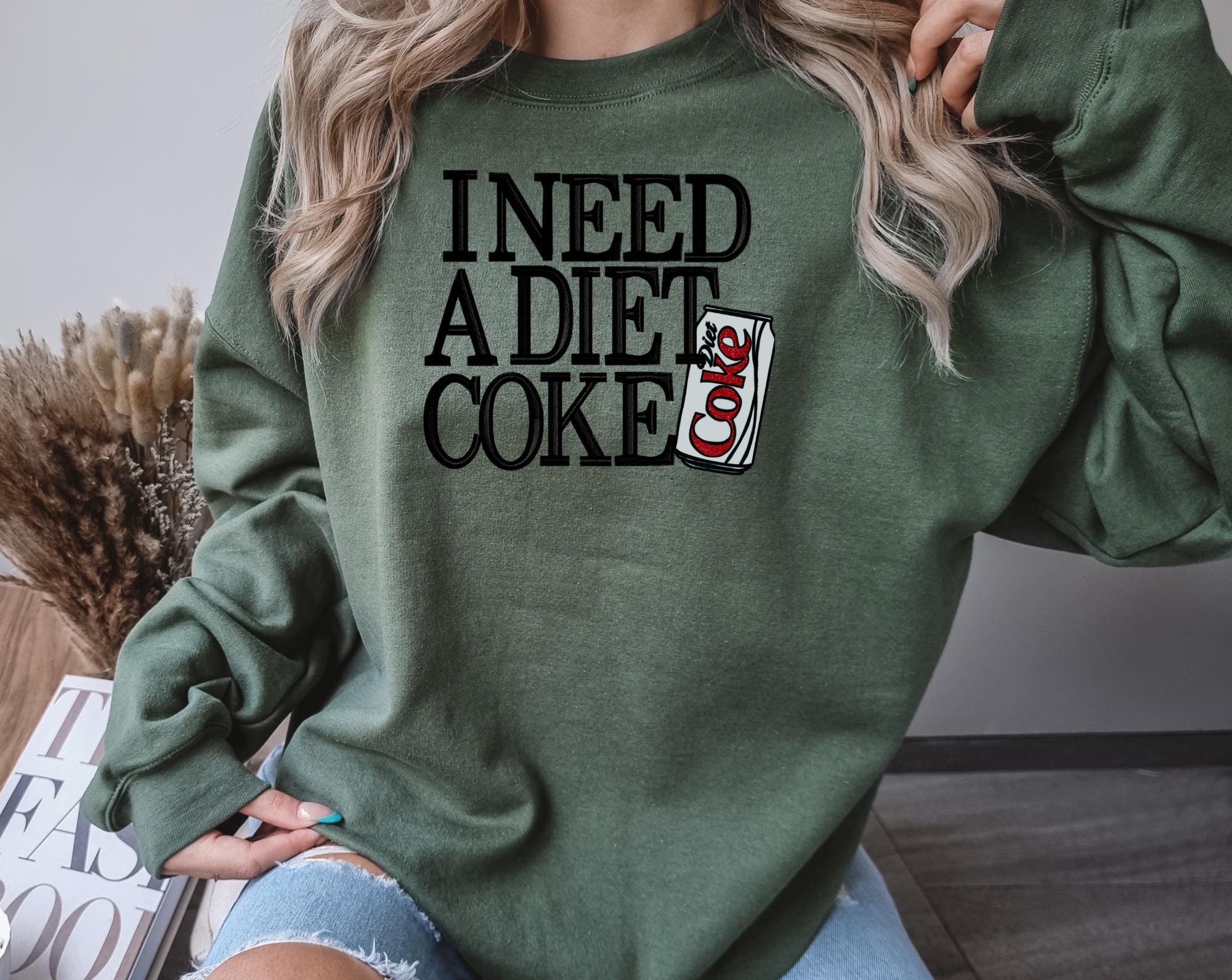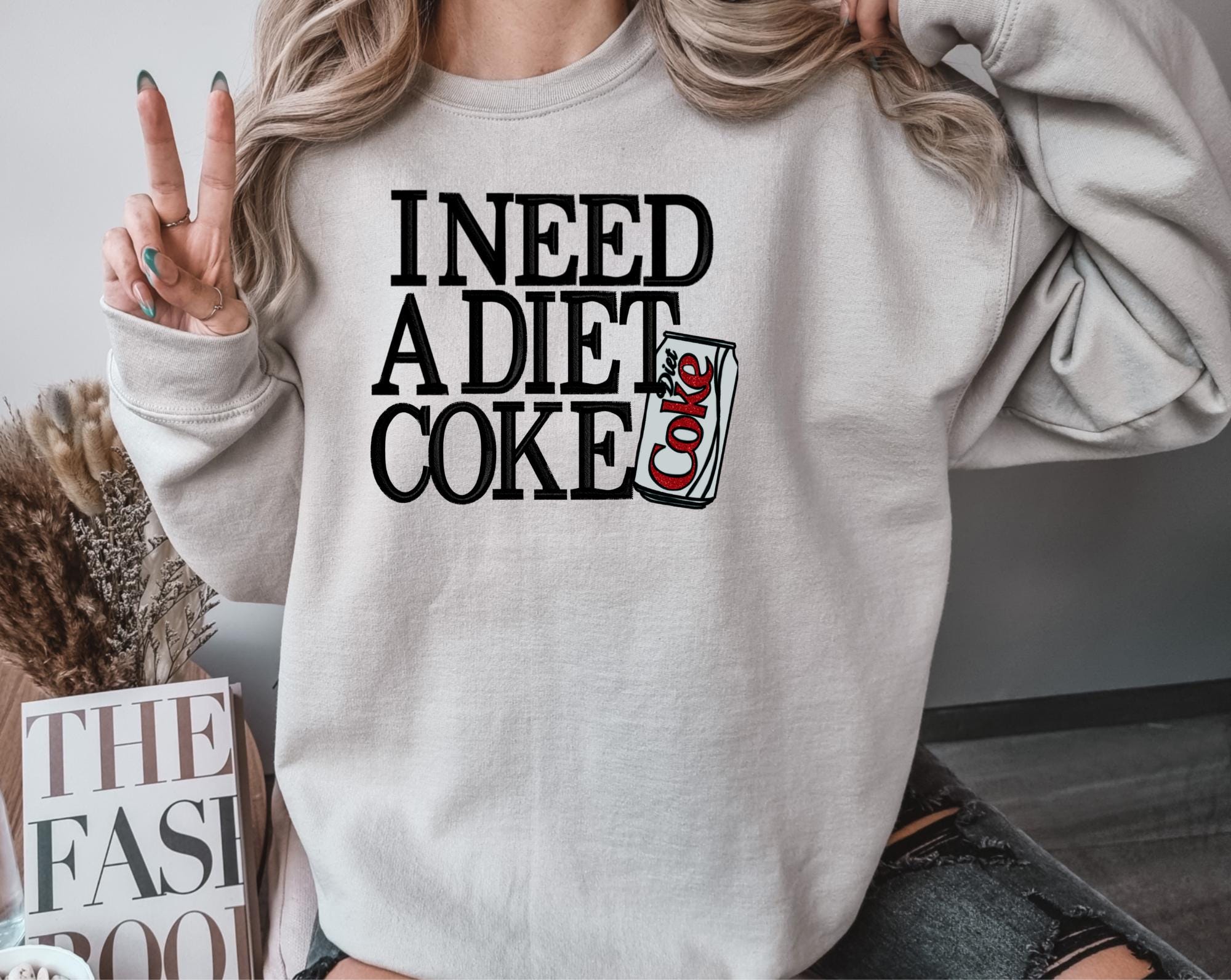 For the Diet Coke lovers who can’t start their day without a sip of bubbly perfection! This cozy sweatshirt features the playful phrase “I need a Diet Coke” paired with an adorable Diet Coke can design — perfect for showing off your caffeine devotion in style.