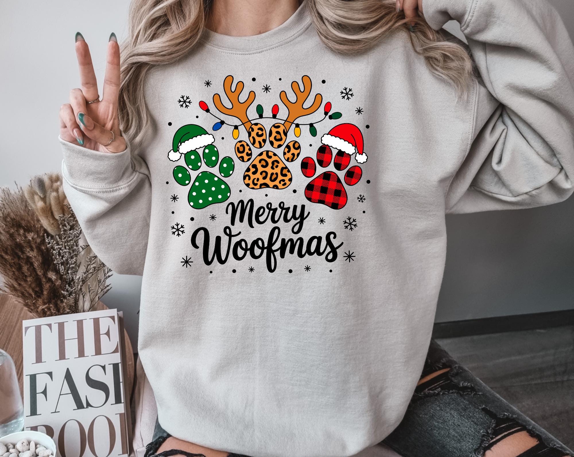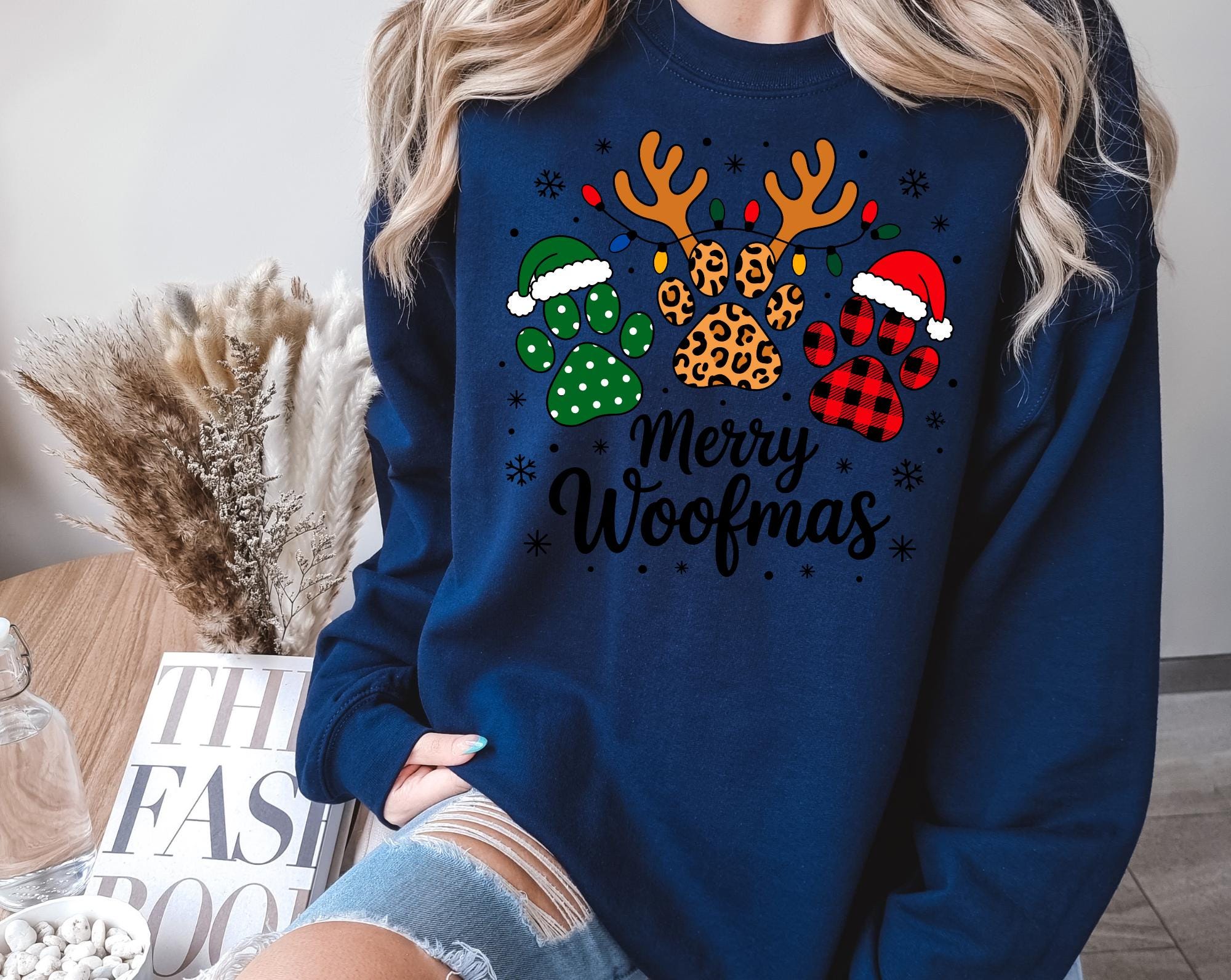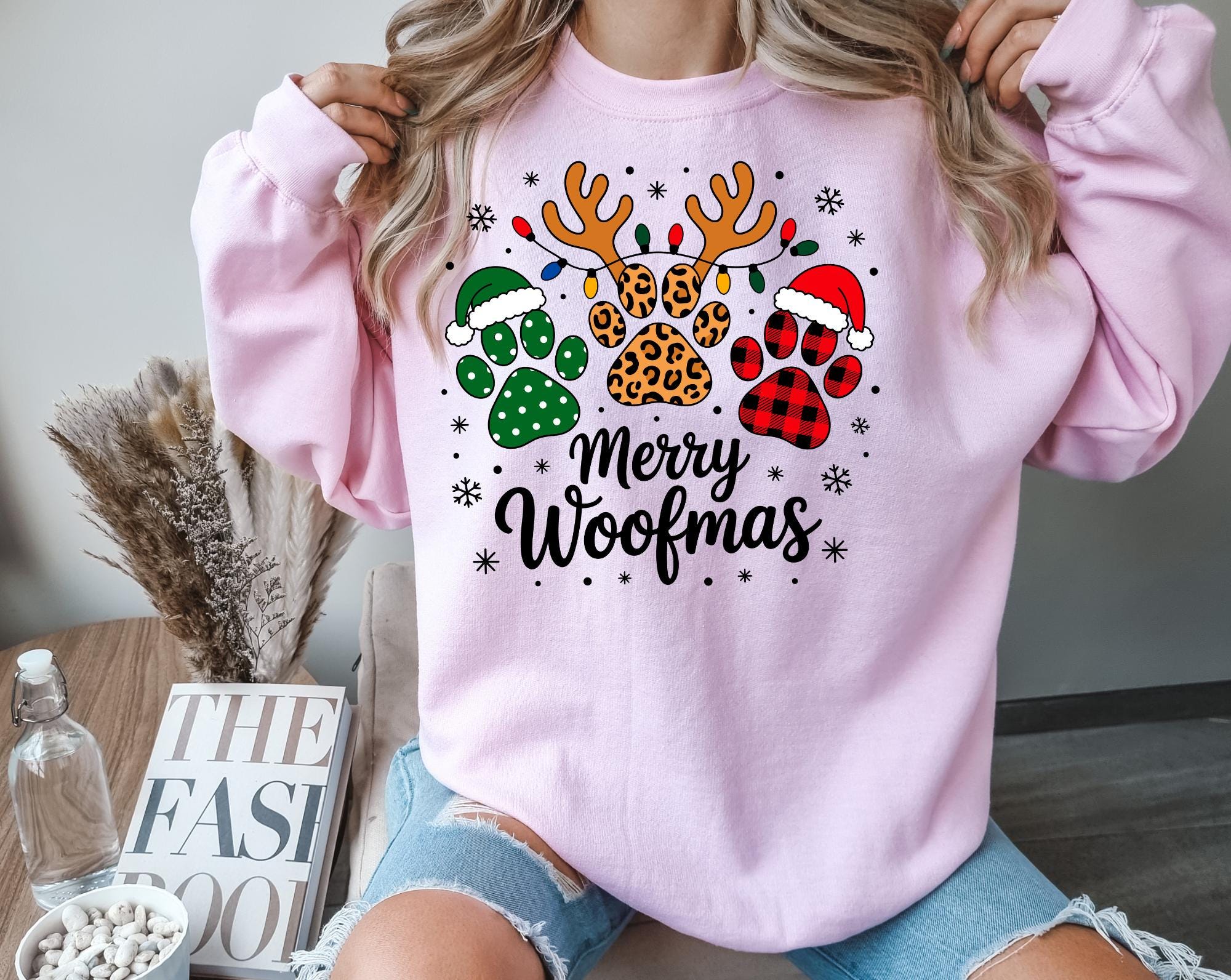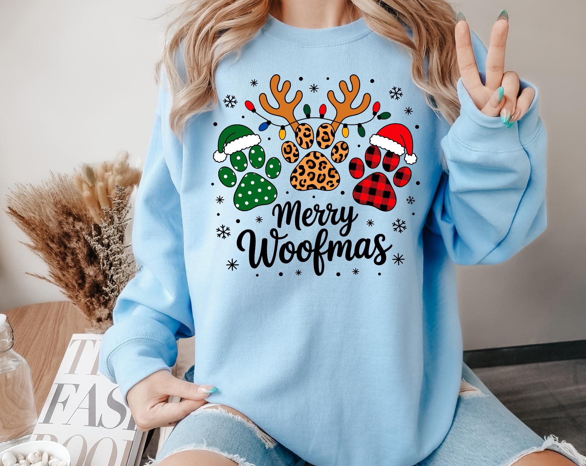 Celebrate the season in the cutest way possible with this festive " Merry Woofmas" Christmas sweatshirt! Featuring adorable paw prints and playful lettering, this cozy crewneck is perfect for dog moms, dog dads, pet sitters, groomers, or anyone who beleives Christmas is just better with a wagging tail.