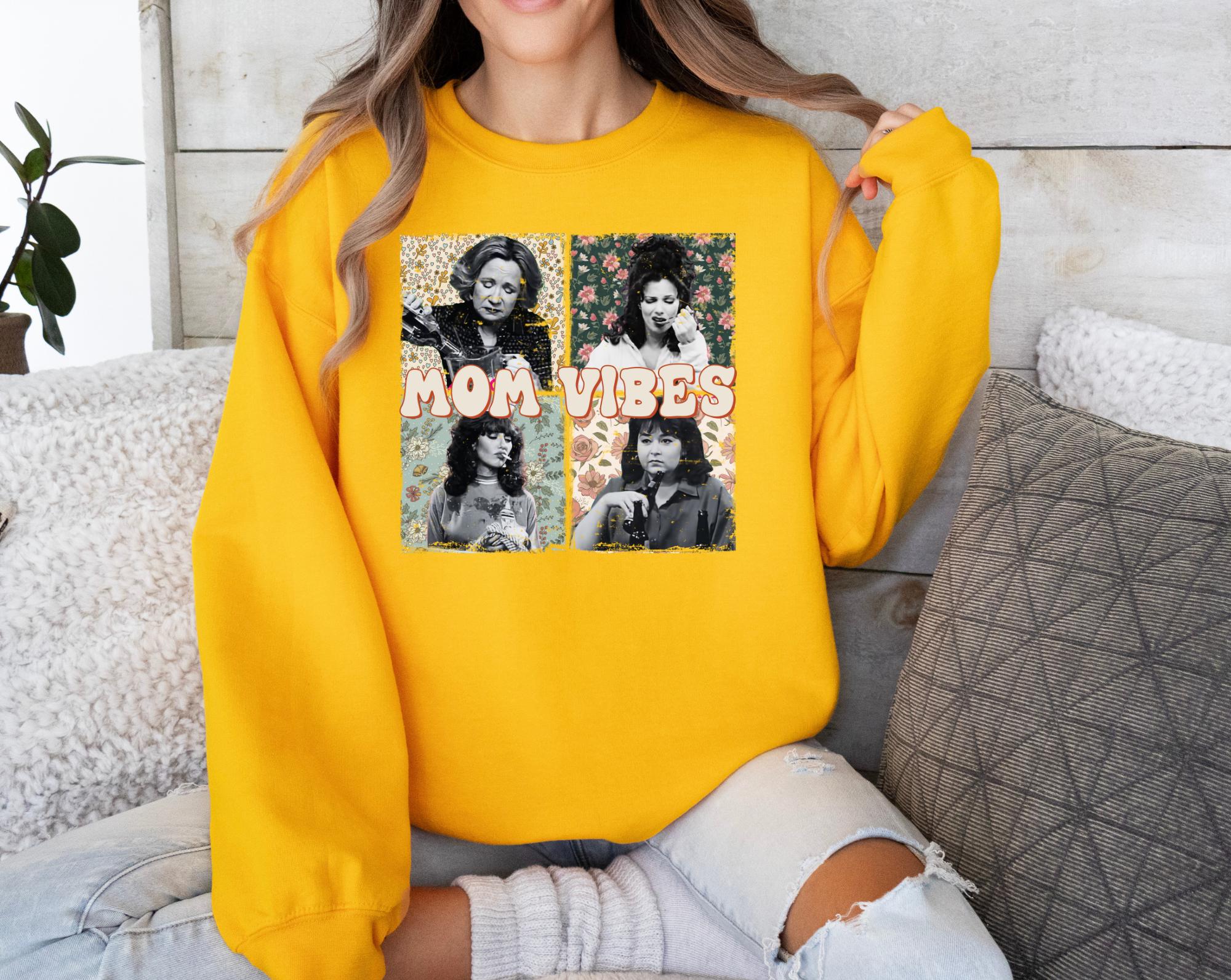 Channel the ultimate comfort,humor,and heart of the iconic 90s sitcom moms we all grew up loving. This Moms Vibe sweatshirt is a cozy nod to classic TV moms who raised us with sarcasm, sass, and unconditional love. This Gildan heavyweight crewneck is perfect for the cold season , warm up and get cute and cozy with this one!