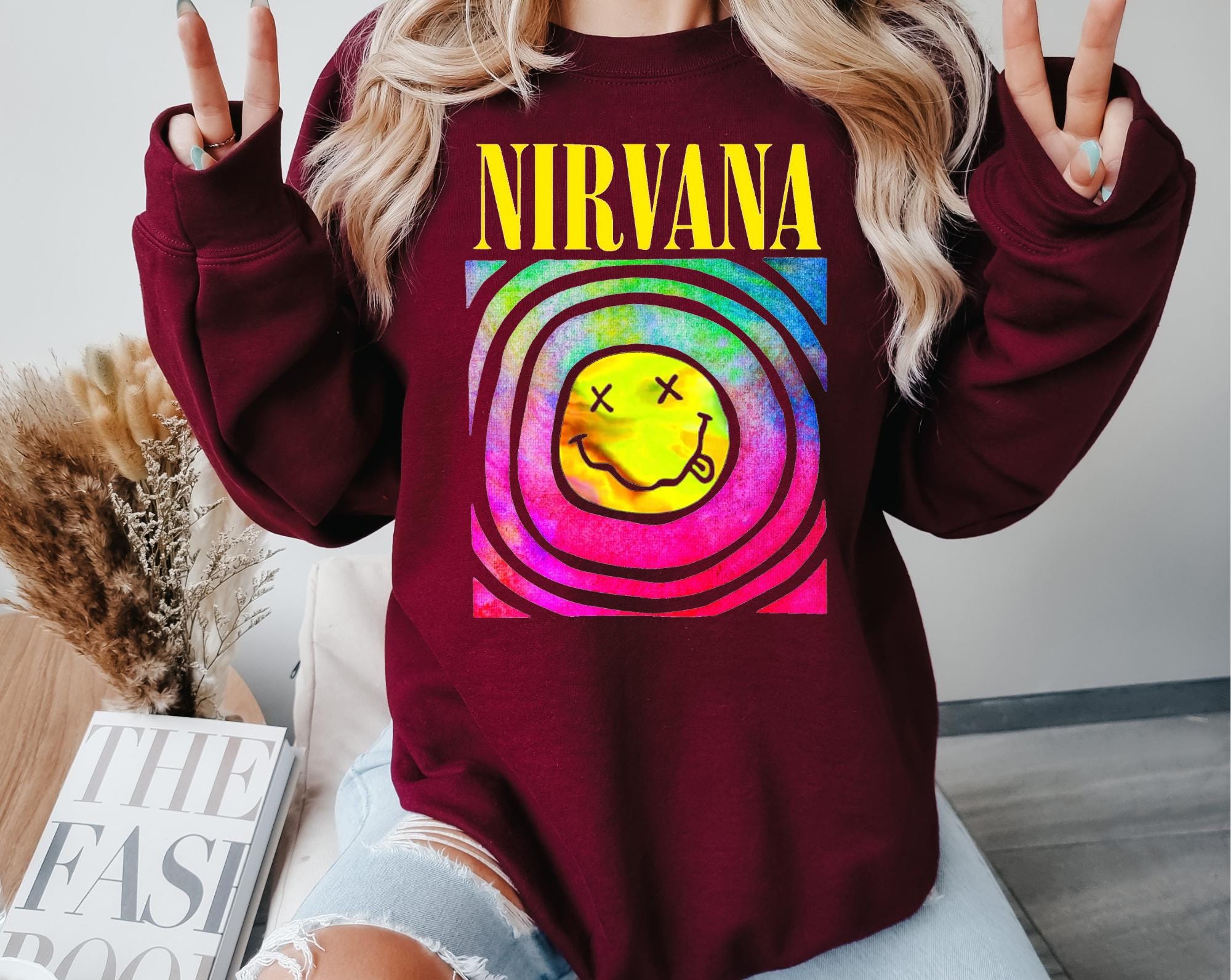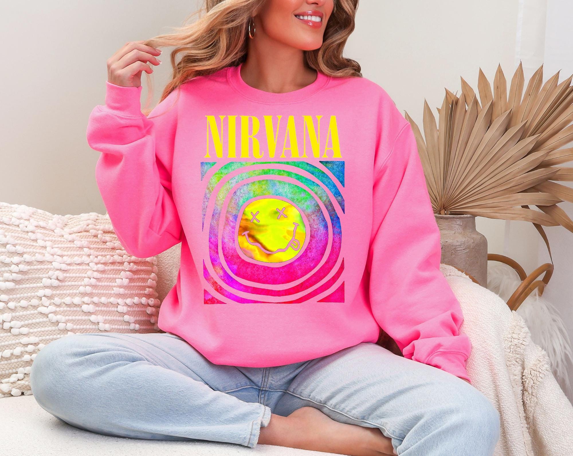Smells like nostalgia! This Nirvana crewneck sweatshirt is made for late night playlists,messy buns,and anyone who still believes the 90s had the best music. Inspired by the iconic grunge era, this cozy crewneck brings effortless cool with a laid-back,vintage feel that never goes out of style!