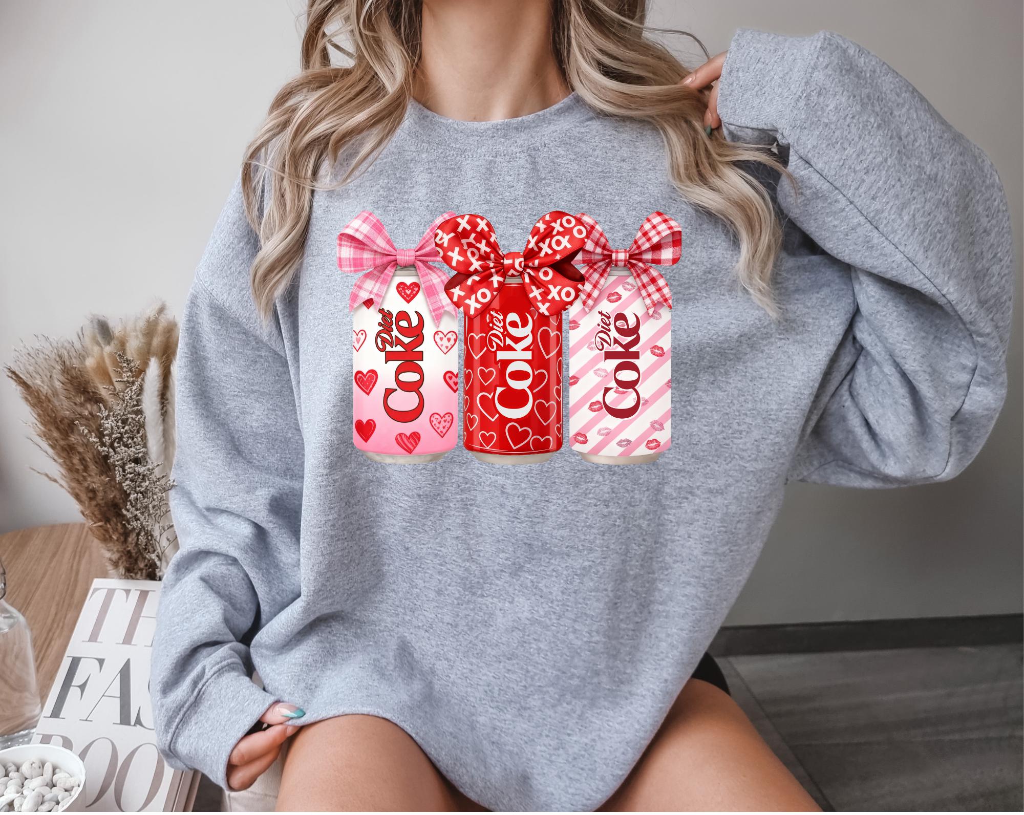 Fall in love at first sip! This Valentine's Day Diet Coke sweatshirt features adorable pink soda can graphics that are perfect for beverage lovers,retro fans, and anyone who believes love comes in a can.