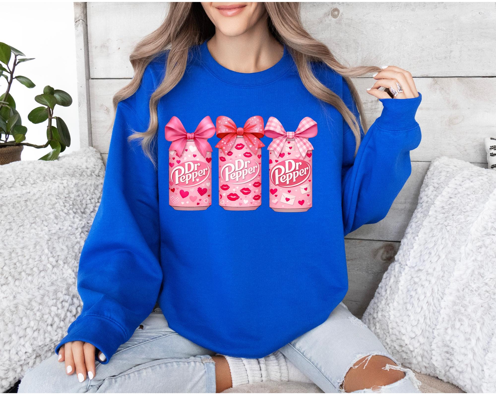 Fall in love at first sip! This Valentine's Day Dr Pepper sweatshirt features adorable pink soda can graphics that are perfect for beverage lovers,retro fans, and anyone who believes love comes in a can.