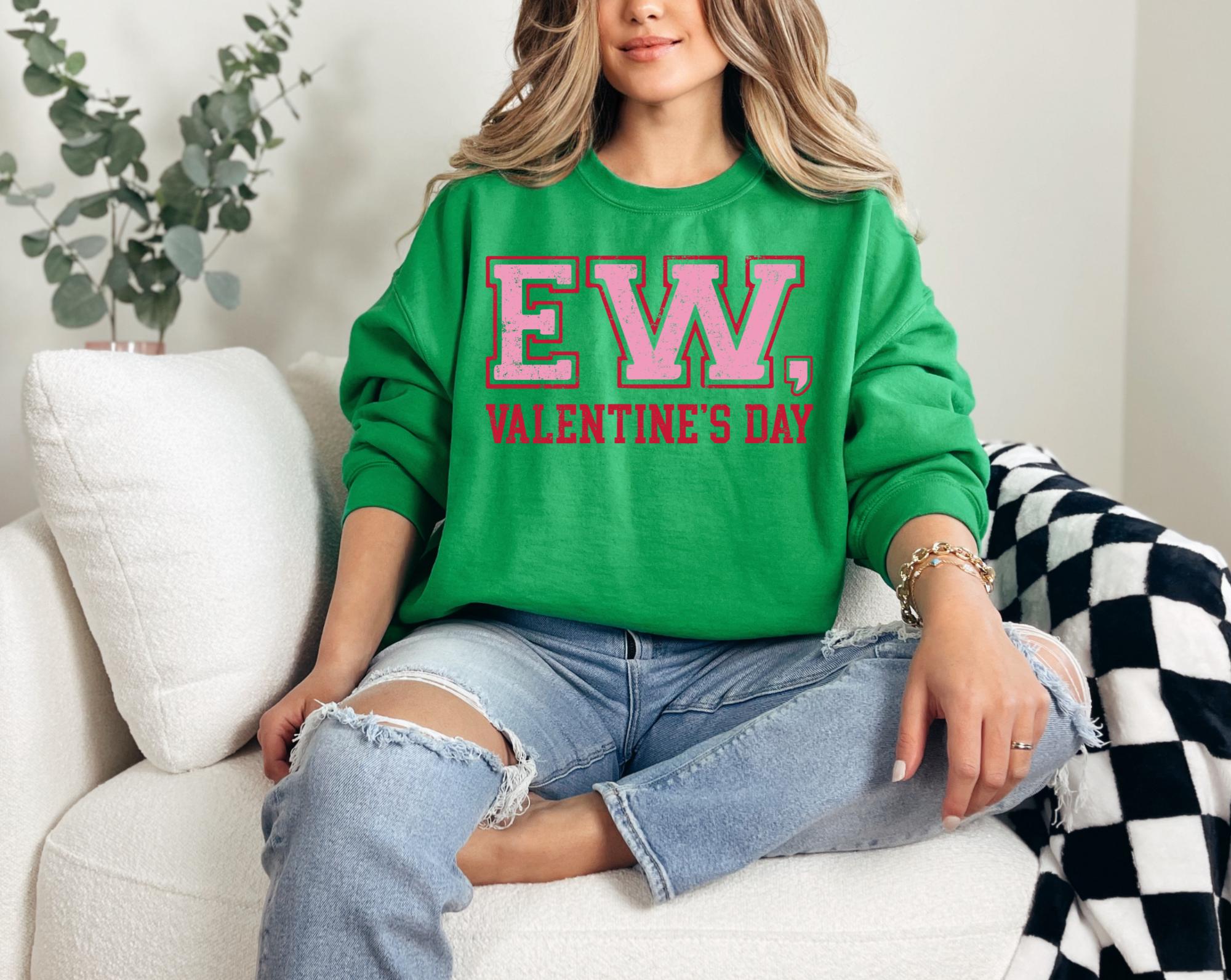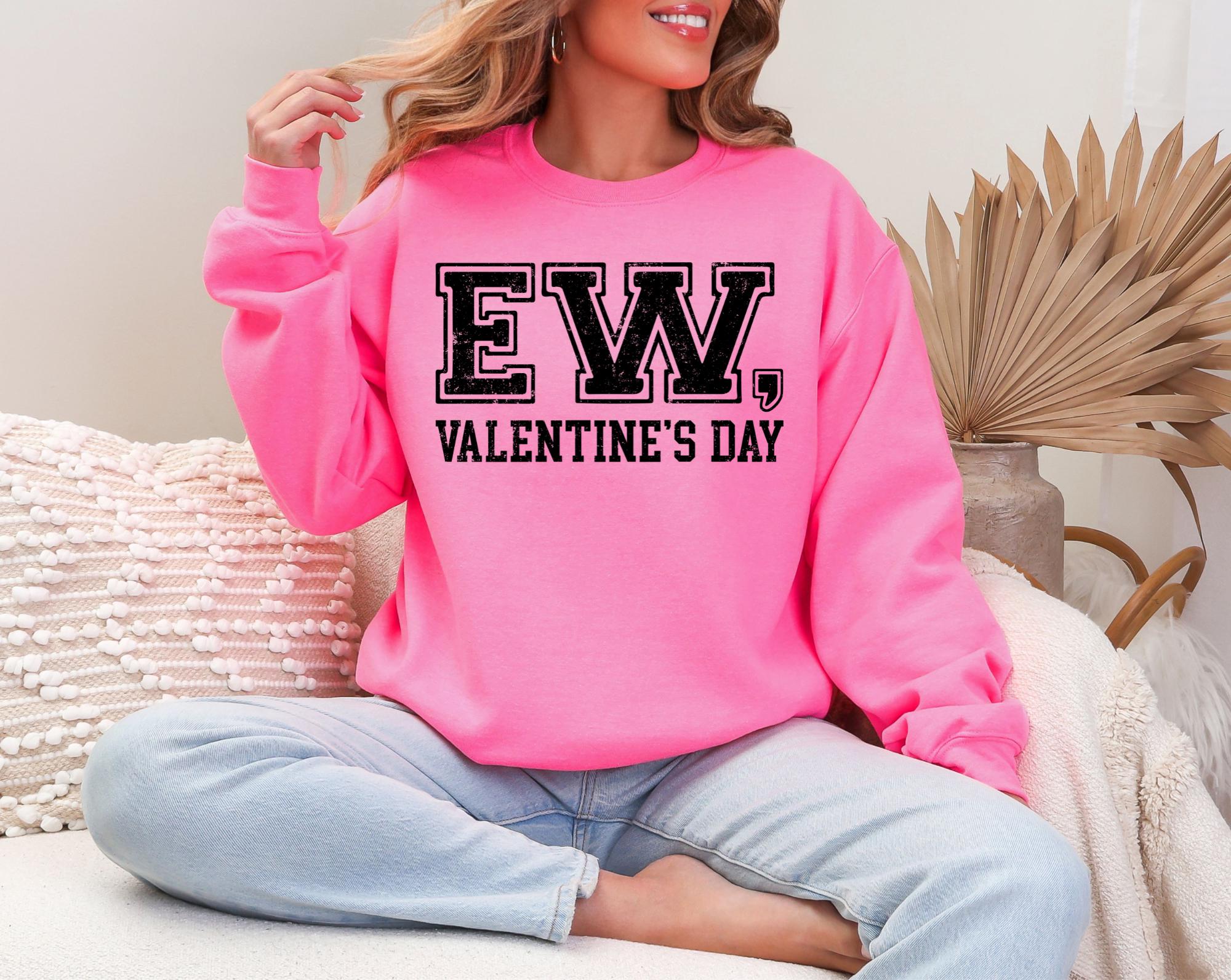 Not everyone's here for the hearts, flowers, and forced romance...and that's okay! This " EW, Valentine's Day sweatshirt is for the unapologetic, sarcastic souls who prefer comfy vibes over cheery love vibes. Cozy, soft for Valentine's Day, Galentine's Day, or just hate the hype, this sweatshirt is for you.