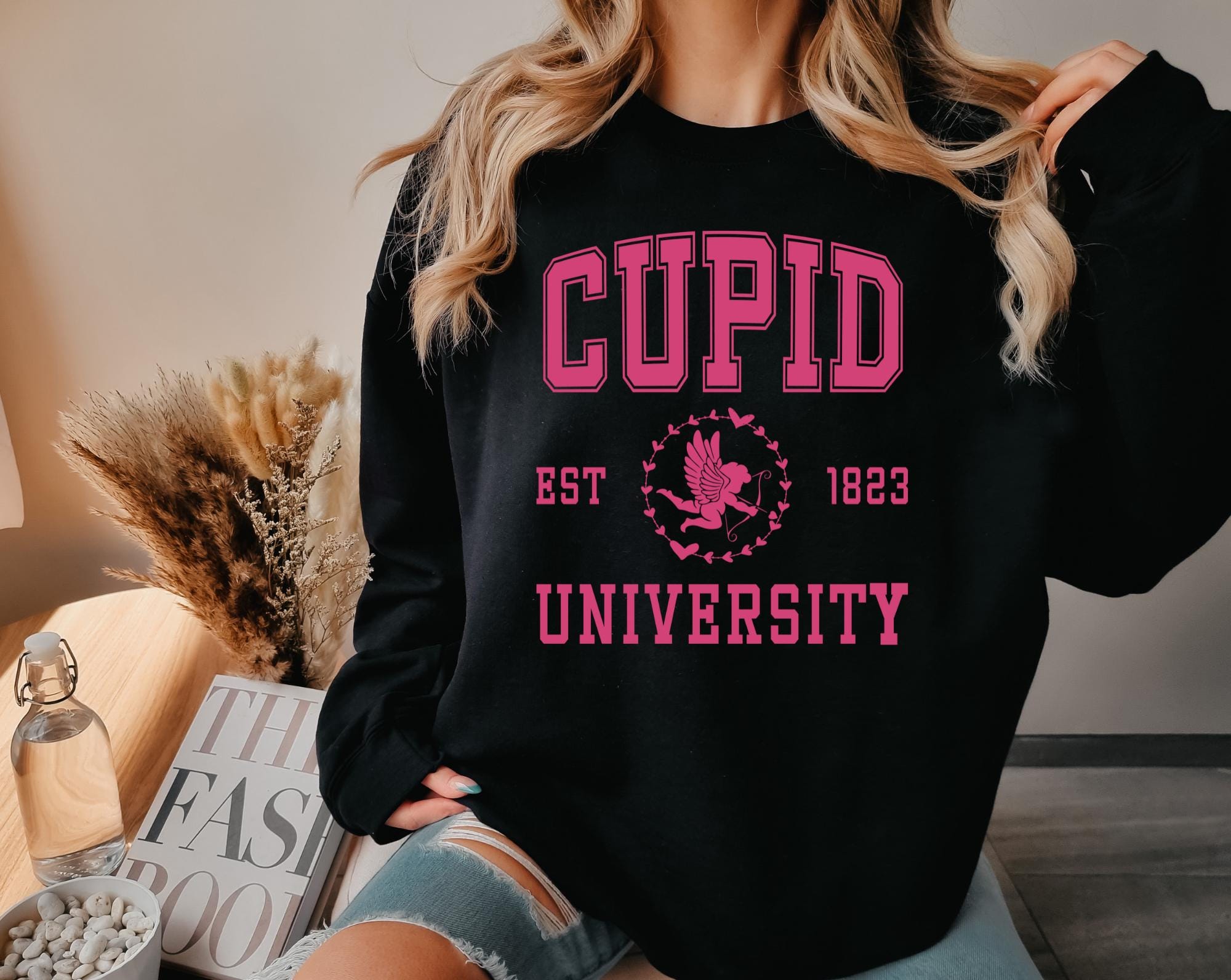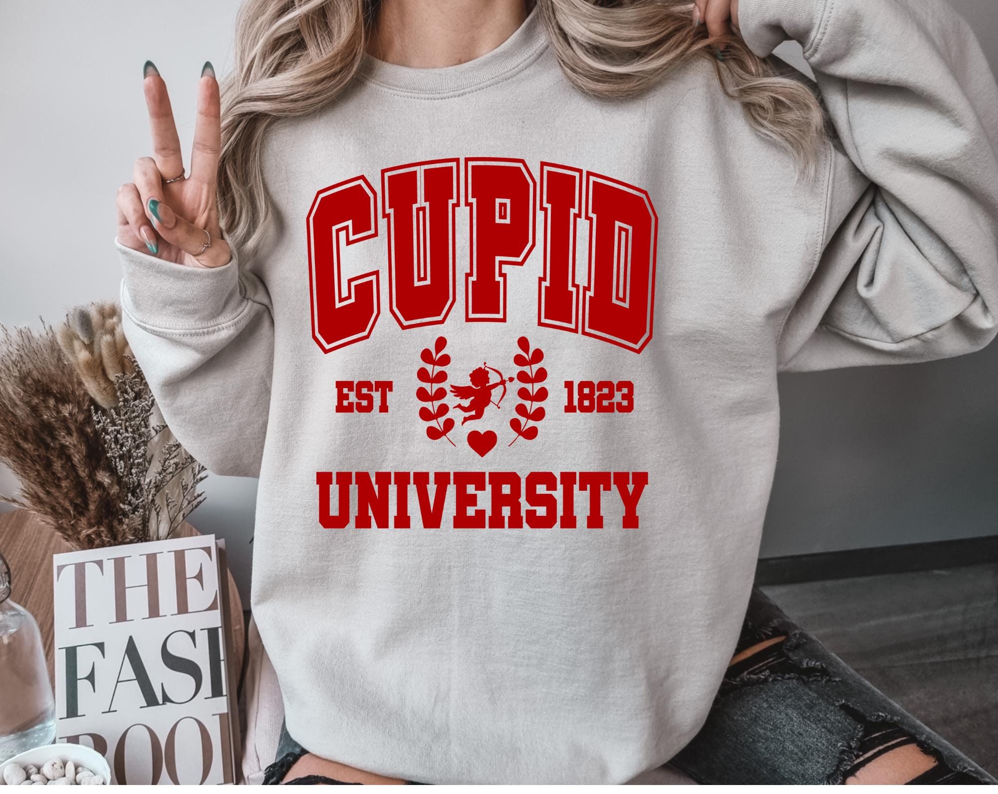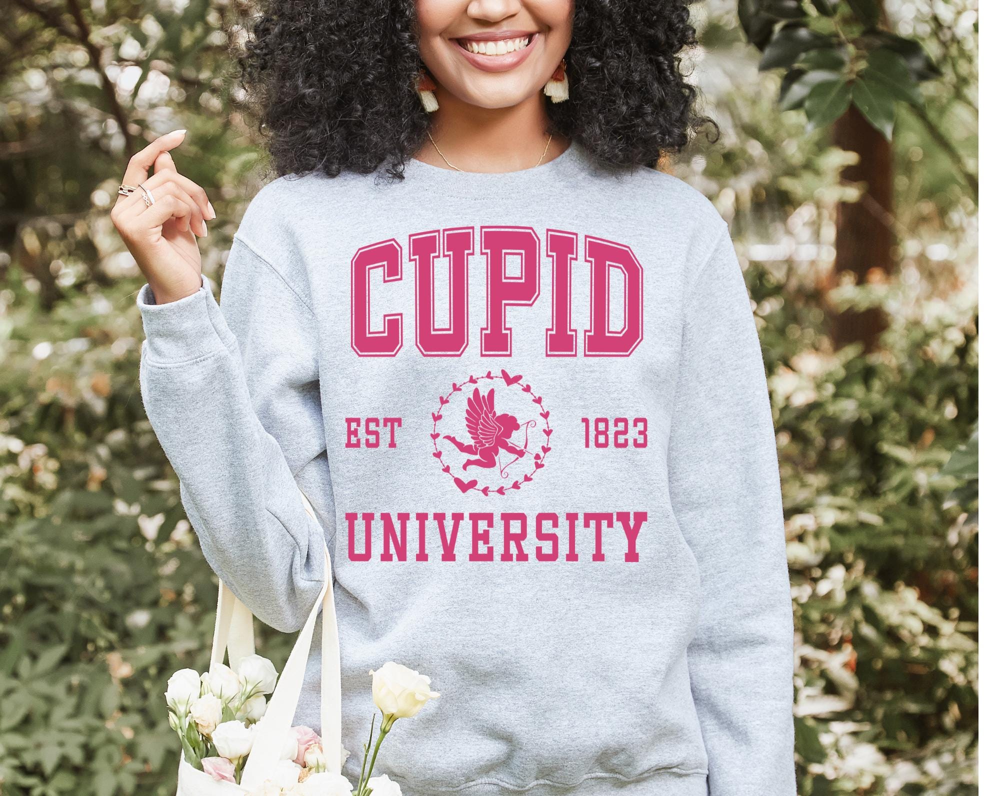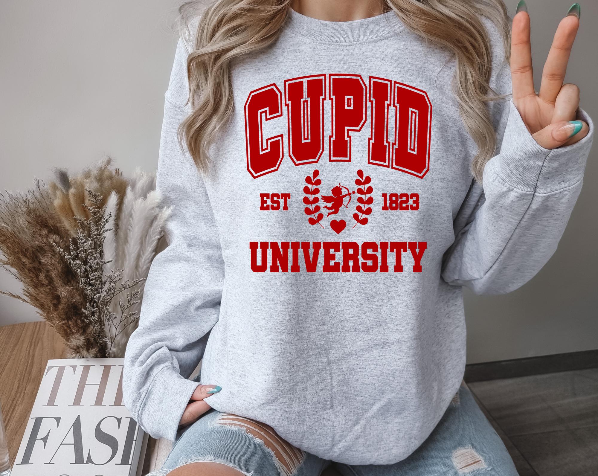 Fall head over heels for our Cupid University sweatshirt. This cozy crewneck features a charming collegiate inspired design that gives all the romantic, preppy Valentine vibes. Perfect for celebrating love season in style-whether you're dressing up for a Valentine's date, Galentine brunch with the girls, or just embracing your inner pink girlieness.