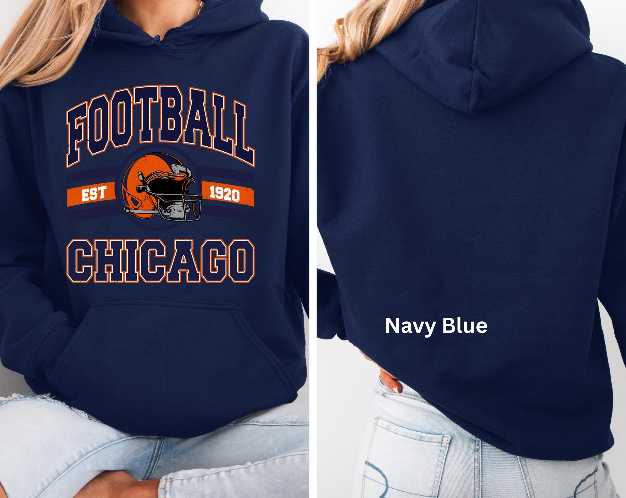 Show off your Chicago Pride with this Football hoodie, perfect for game days,tailgates,or cozy fall and winter vibes. Designed for true Chicago football fans,this sweatshirt features a timeless casual style you will love.