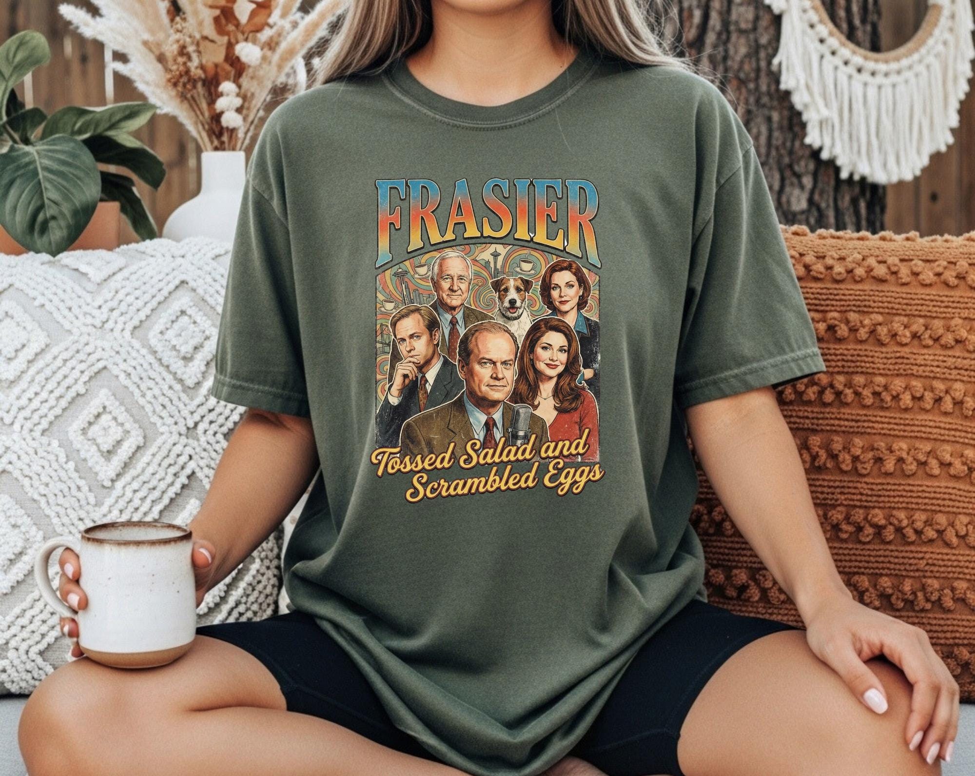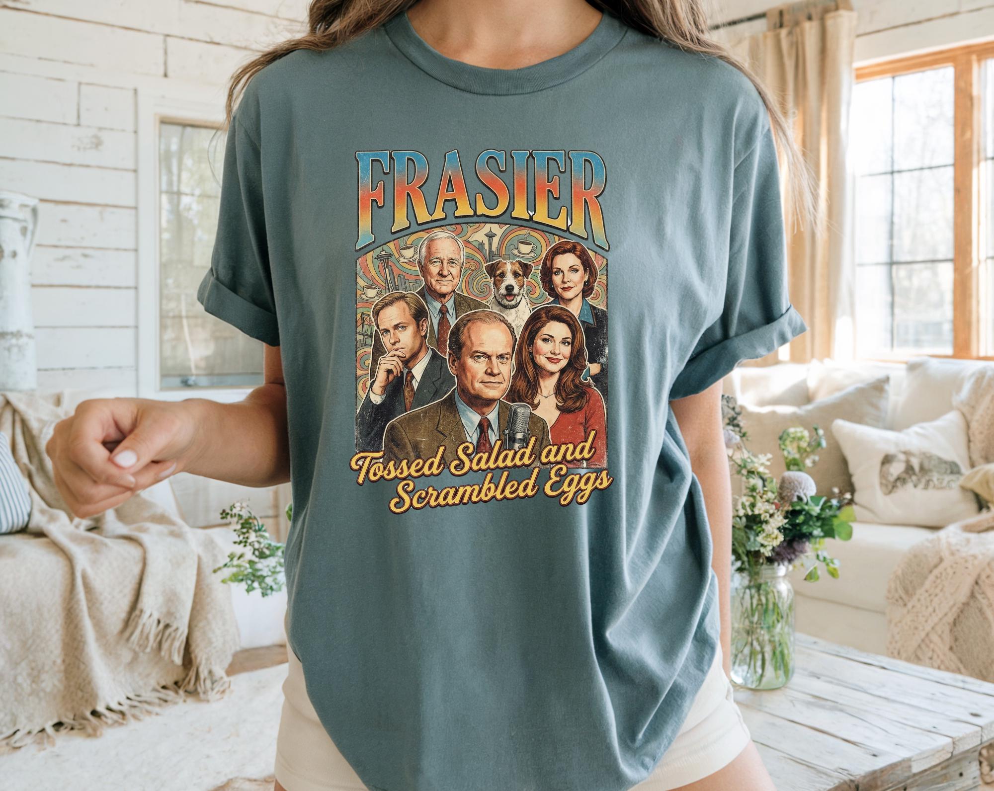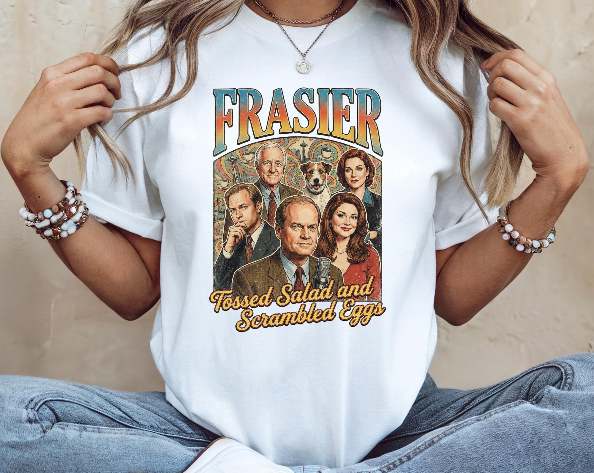 Calling all Frasier fans! This Frasier sitcom-T-shirt os a must have for lovers of classic 90s television. Inspired by the iconic seatlle-based sitcom,this tee is perfect for cozy nights in, coffee runs, or rewatching all your favorite episodes with a glass of Sherry in hand.