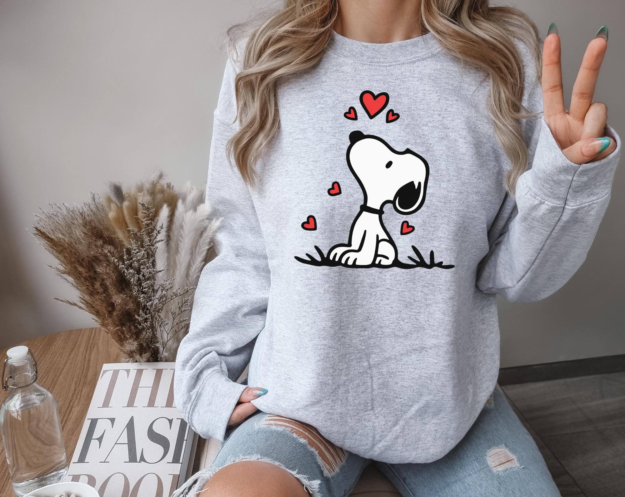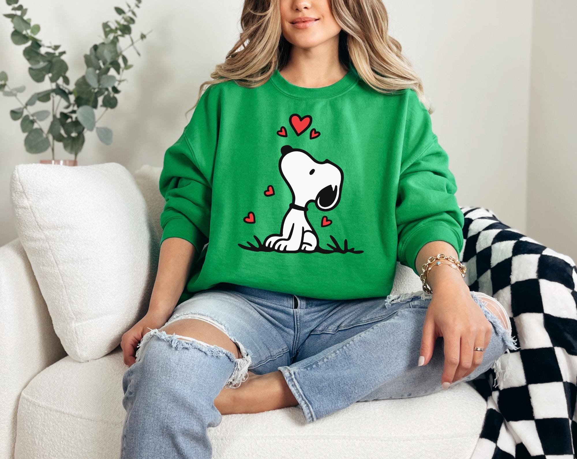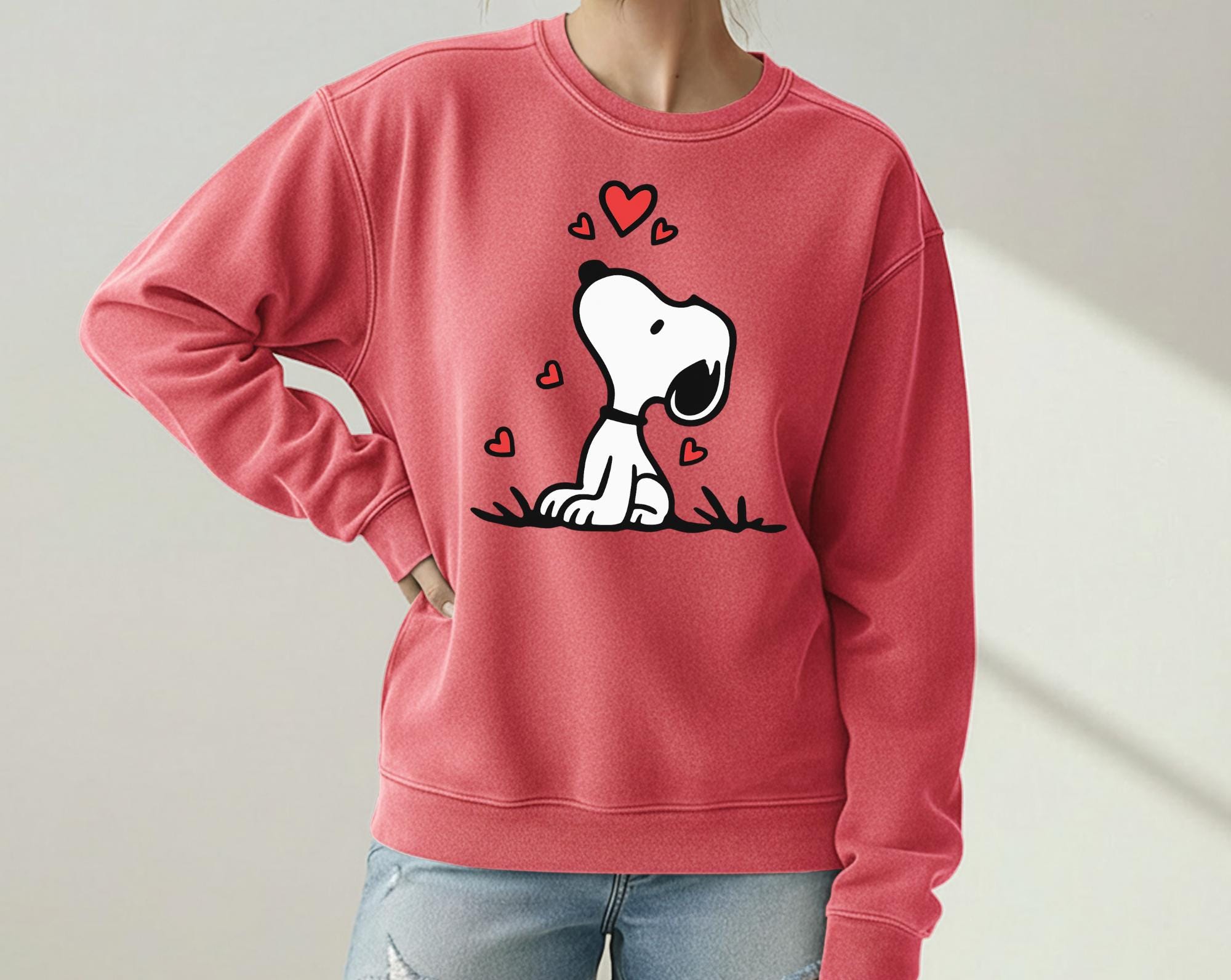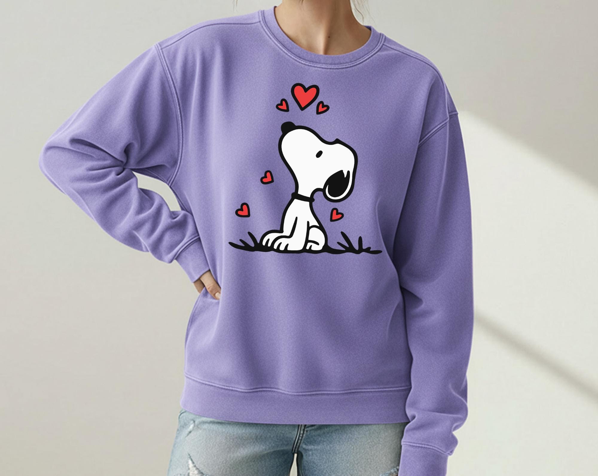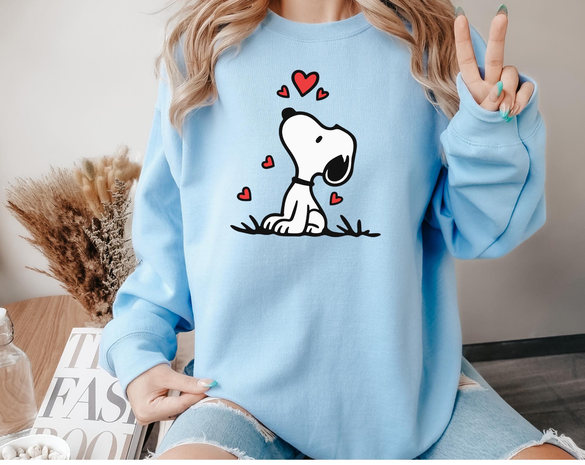 Love is in the air with this adorable Snoopy sweatshirt Just in time for Valentine's day! I love snoopy everything and would wear this anytime, not just Valentines day, This design comes with Two different sweatshirt brands, Comfort Colors and Gildan. Both are comfortable and look great on.