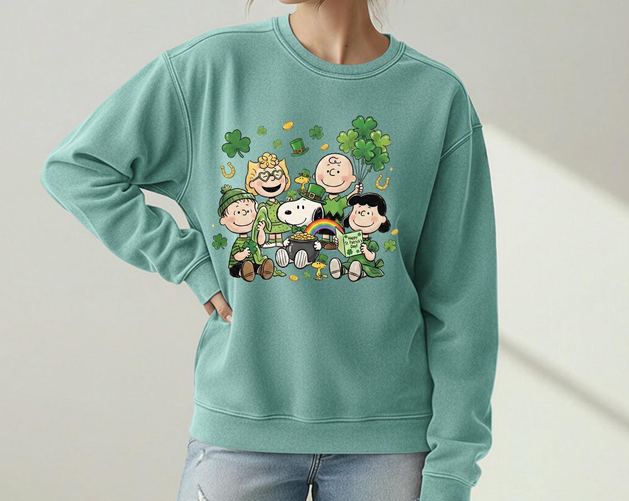 Get Lucky in cozy style! This St. Patrick's Days Sweatshirt featuring Charlie Brown and his friends is the perfect way to celebrate the Holiday with a fun, Nostalgic twist.