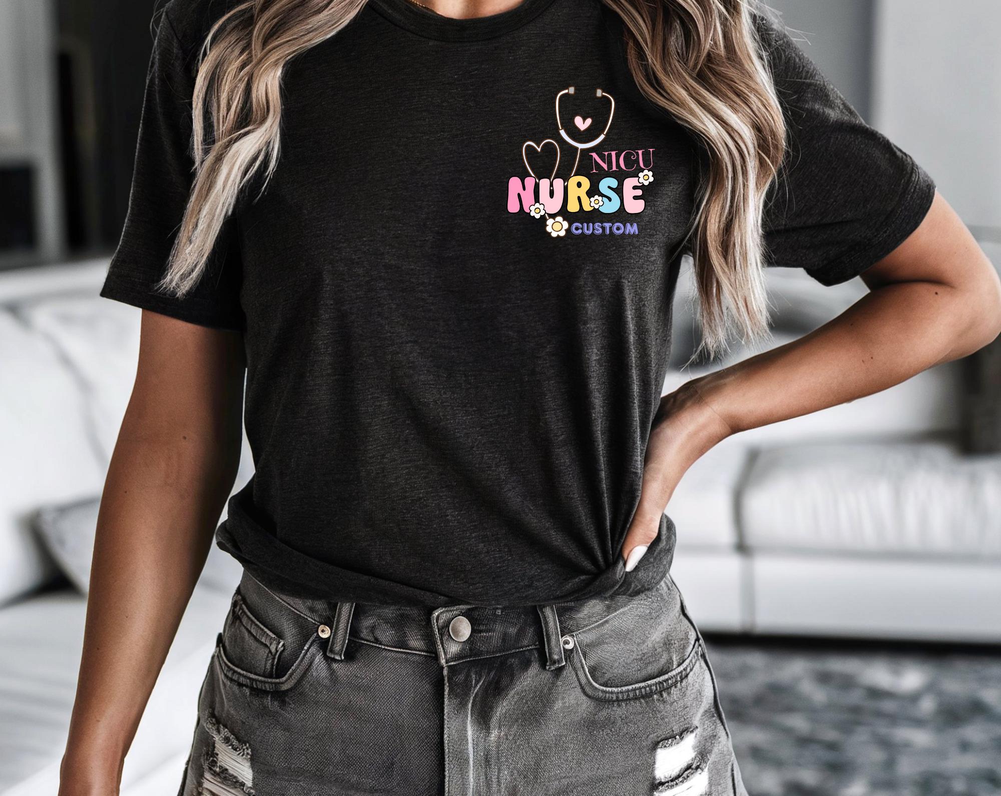 Celebrate The heart, strength,and dedication of nursing with this Personalized Nurse shirt! This custom Tee lets you choose which Nurse they are and personalize it with there Name.