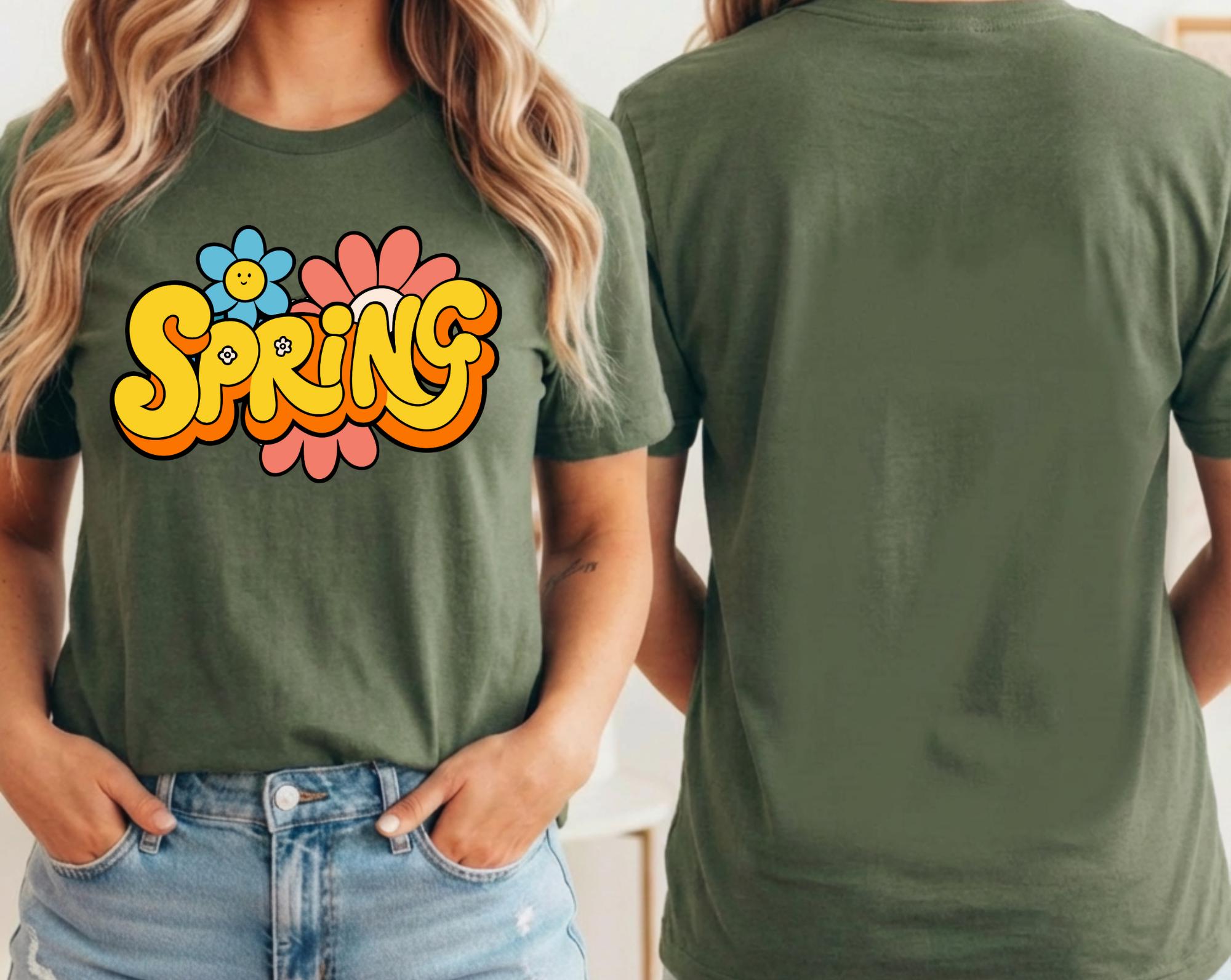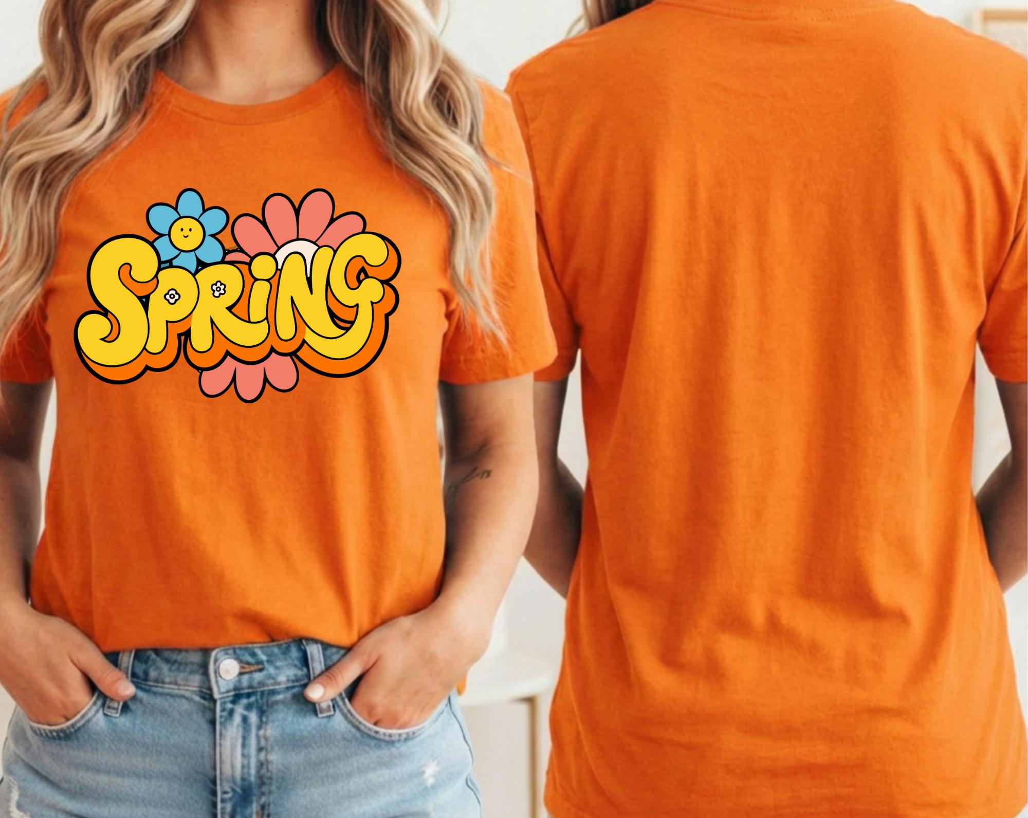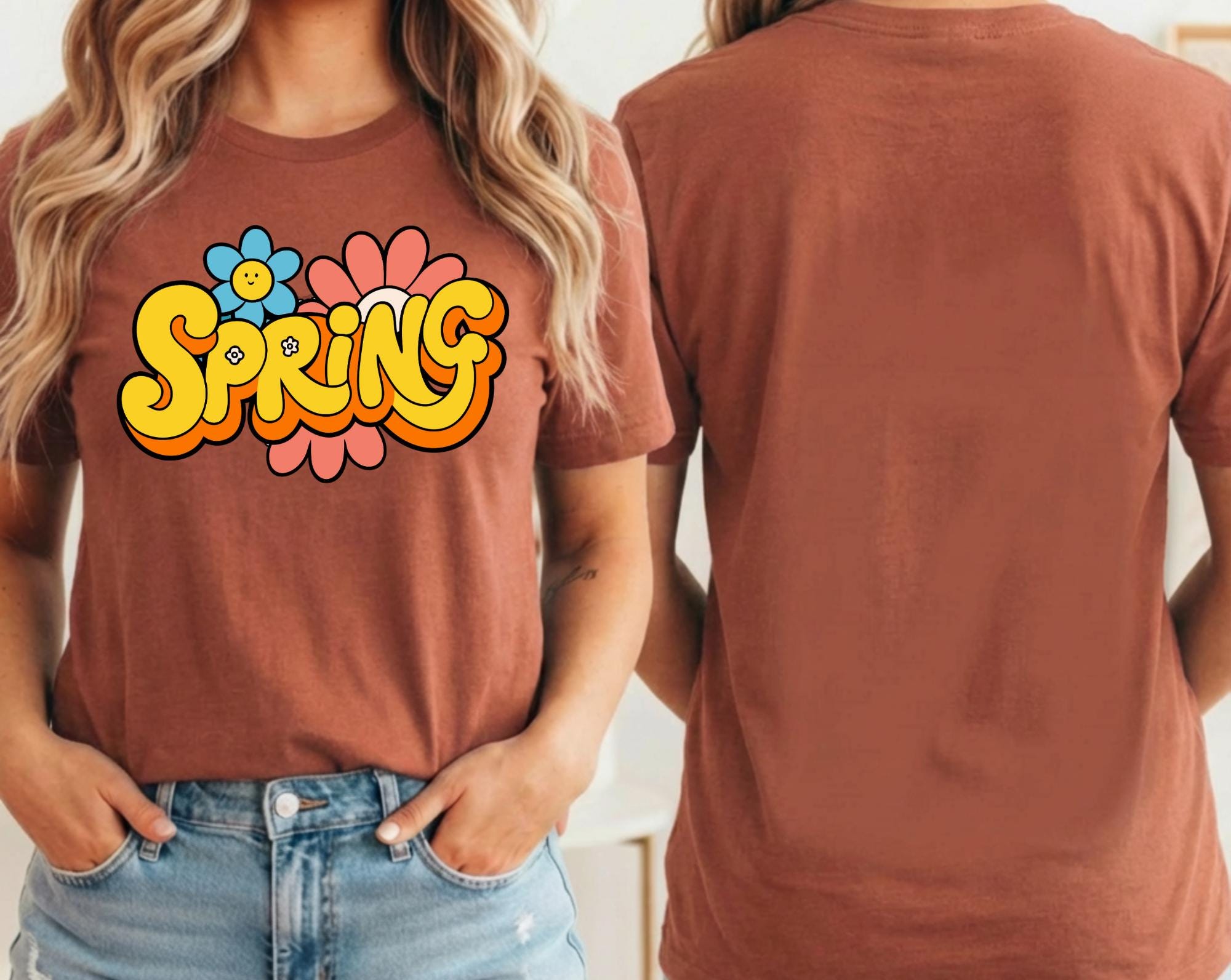 This SPRING graphic T-shirt features bright,cheerful colors that instantly lift the mood and celebrate the season of Sunshine,flowers,and fresh starts.