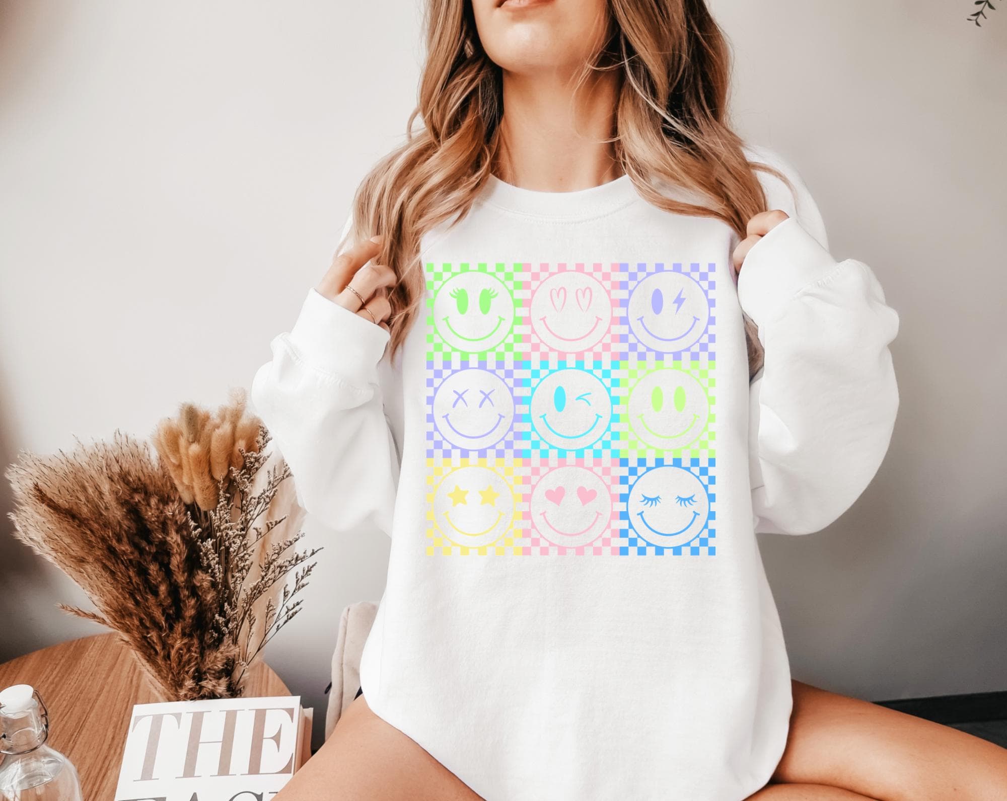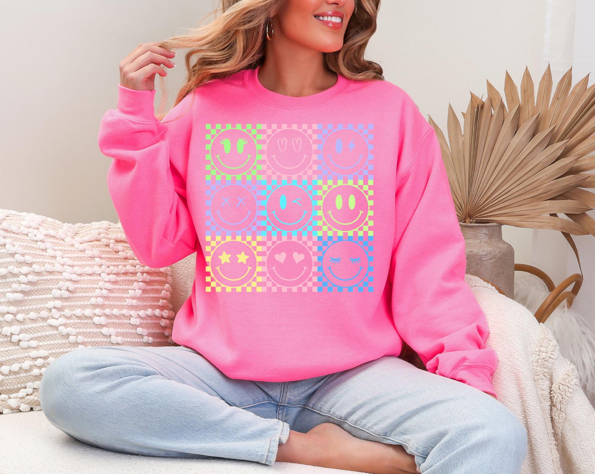 It's giving Spring Vibes🌸 features Bright colored smiley retro faced Sweatshirt that screams sunshine and spring smells ☀️